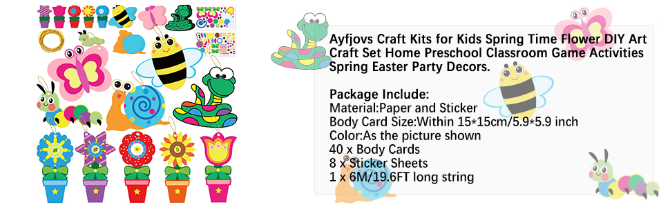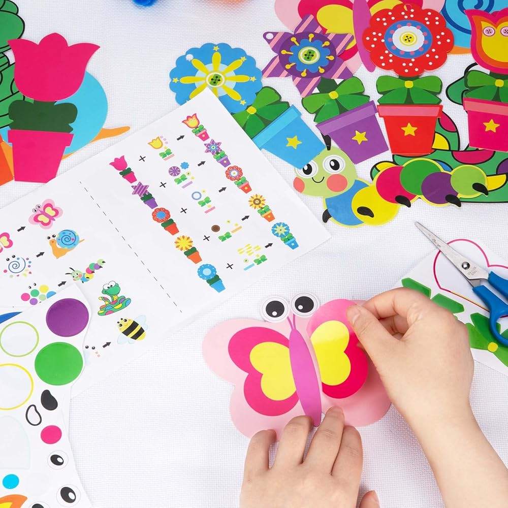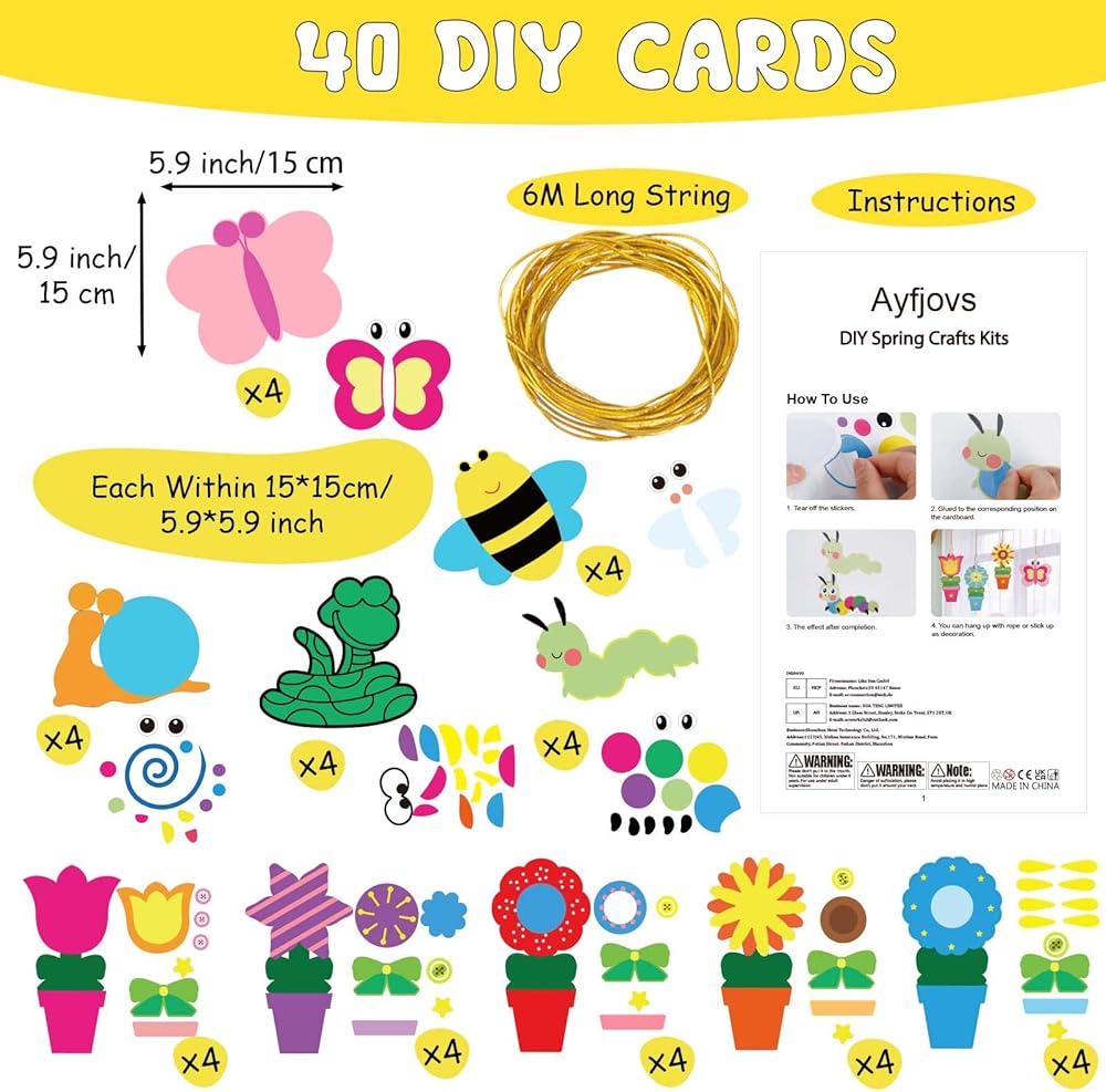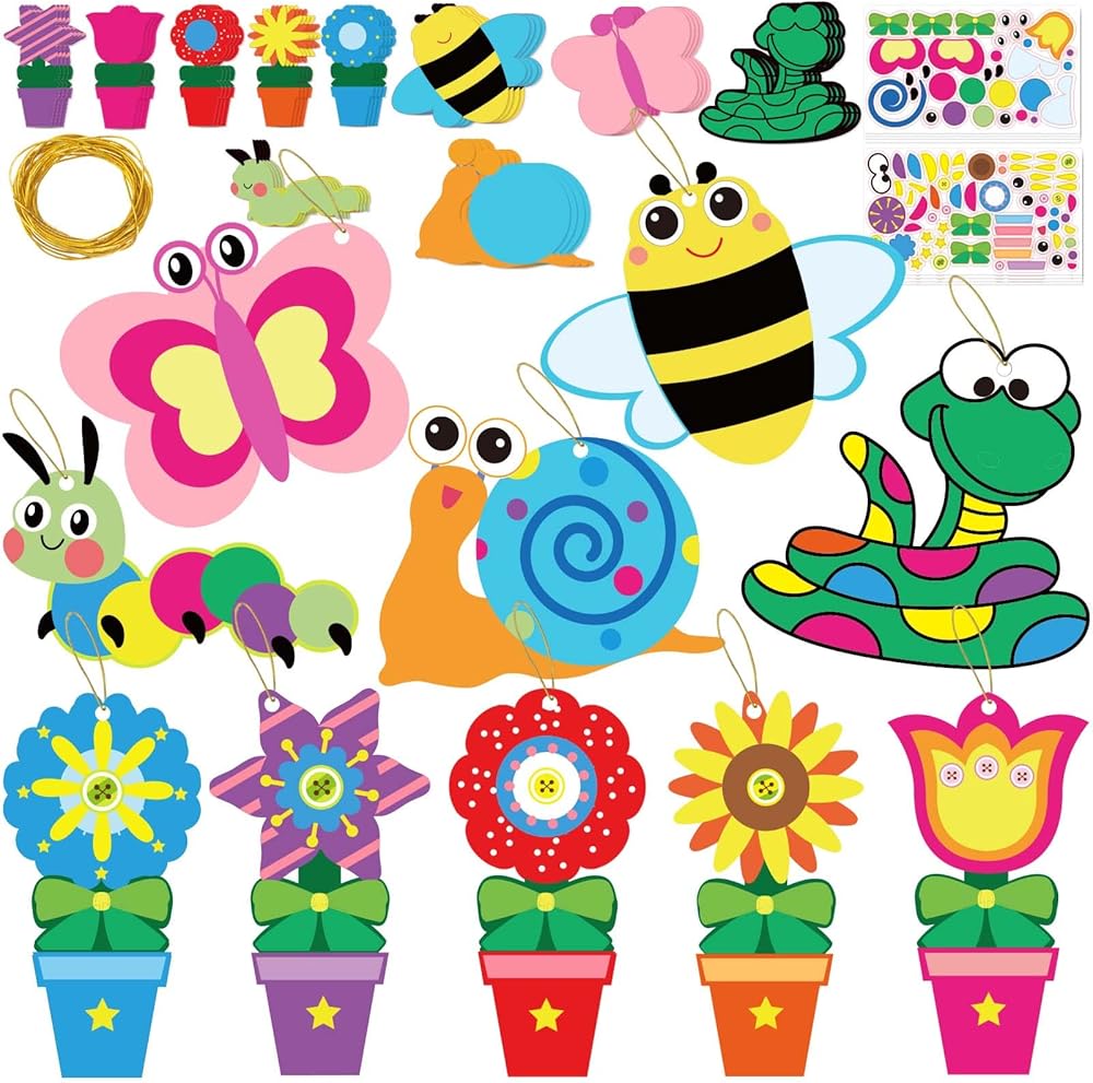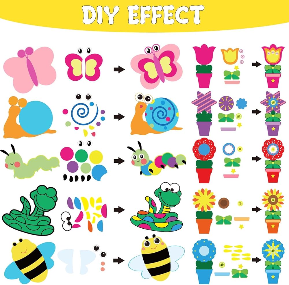 ايفيجوفز 40 عبوة من الحرف اليدوية الربيعية للاطفال على شكل حشرات وزهور حرفية للاطفال، ملصقات فنية للتعليم المبكر، مجموعة حرفية للحشرات وأنشطة الالعاب الترفيهية في الفصل المنزلي