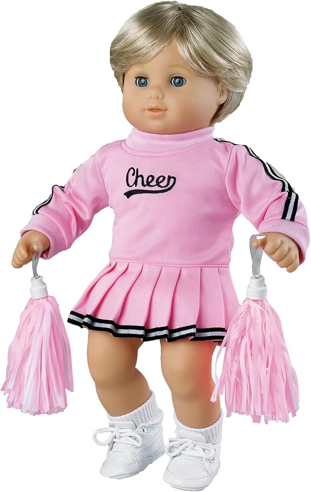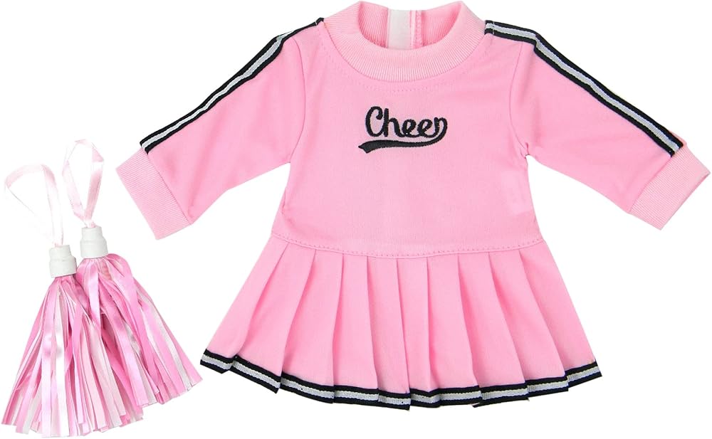 زي مشجعة لملابس الدمية الصغيرة مقاس 15 بوصة من صوفيا، 3 قطع. مجموعة من فستان المشجع الوردي، وبوم بومس ومكبر الصوت يناسب دمى الأطفال، ومجموعة المشجع الوردي | الدمية غير متضمنة