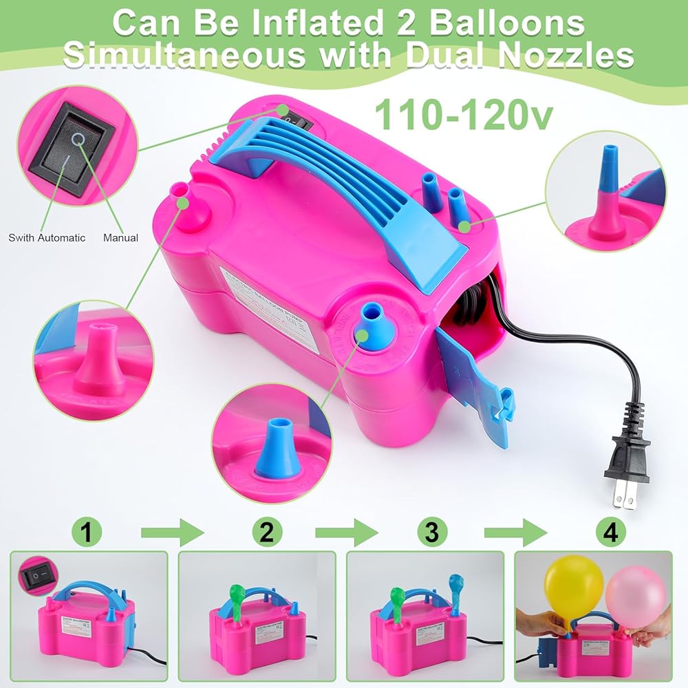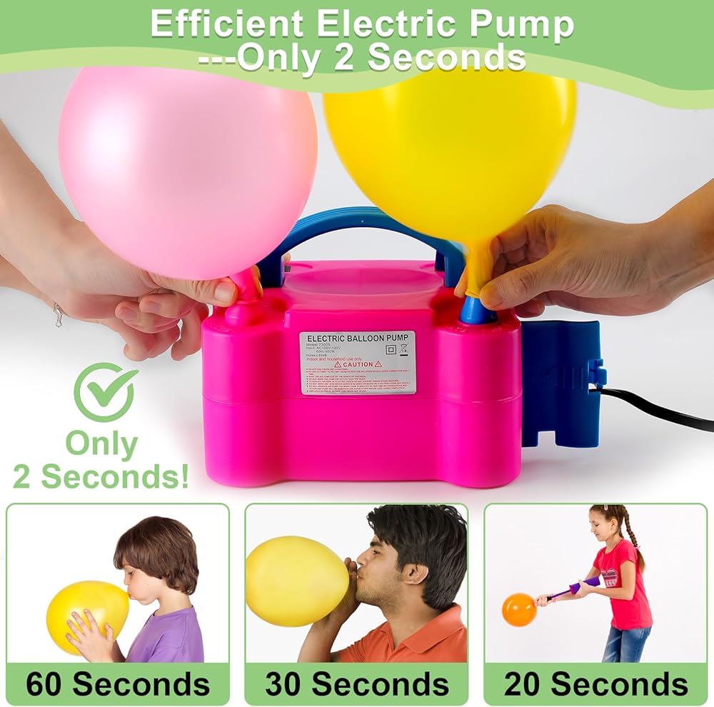Safety & Portable Balloon Pump: The Pump Has Overheating Protection Function, Totally Safe To Use. It Has Manual And Automatic Pumping Modes, Which Will Inflate A Balloon In Only 2 Seconds, Hundreds Of Balloons Will Be Pumped In Minutes. The Easy-Grip Handle And Portable Size Allow You To Take It Anywhere For On-Site Balloon Filling