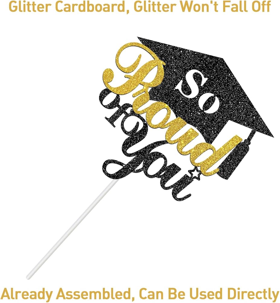 This cake topper made of high quality glitter card stock and food grade sticks. These two materials will not harm health and pollute the environment, reusable.
