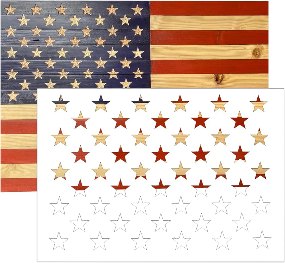 قالب استنسل 50 نجمة بتصميم العلم الامريكي، 12×15.7 انش، استنسل ستارفيلد قابل لاعادة الاستخدام، للرسم على الخشب والقماش والورق والفرشاة الهوائية والزجاج وفنون الحائط، تصميم الحرف اليدوية، مشاريع العلم