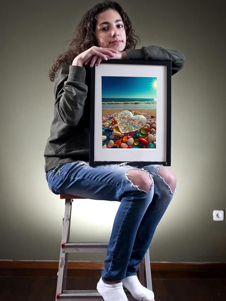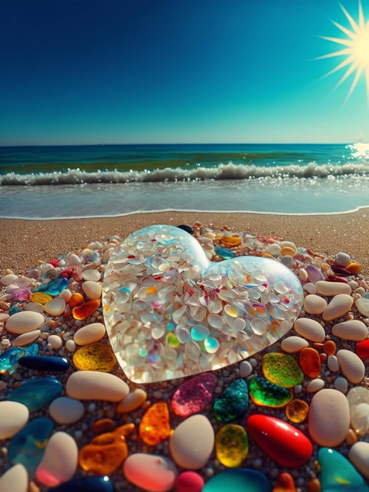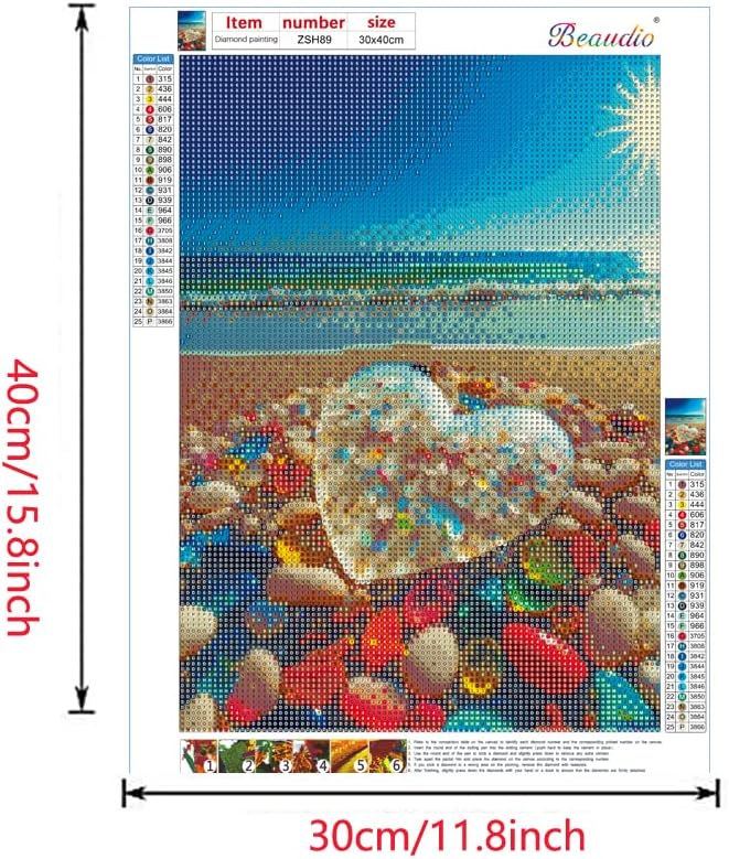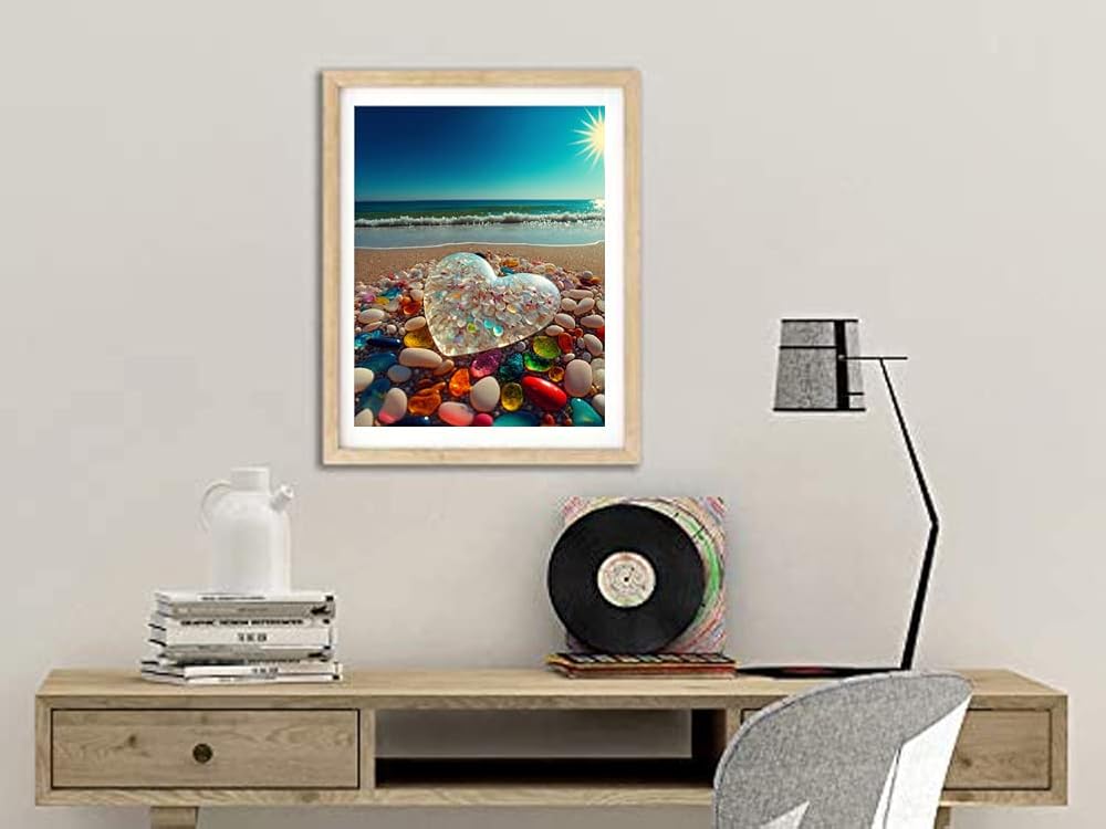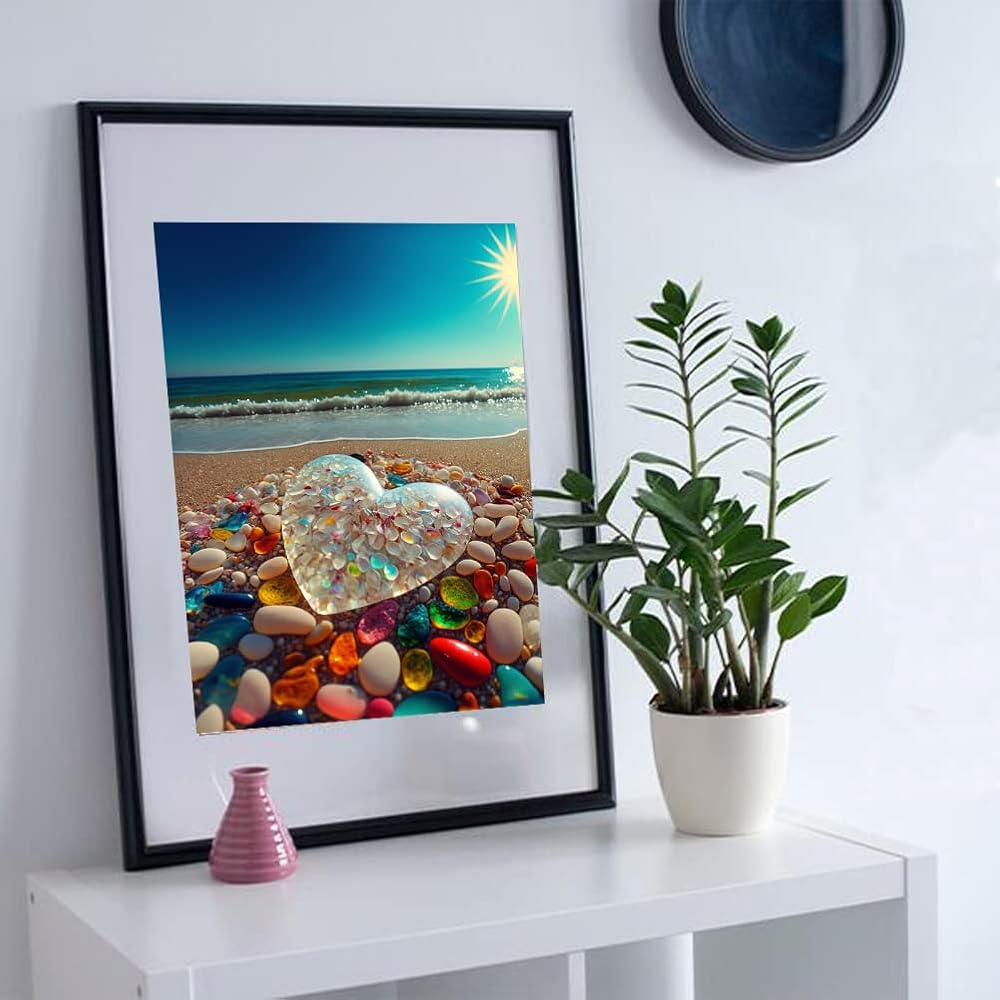 بي اوديو مجموعة الرسم الماسي من سلسلة اقتباسات الحب للبالغين - حجر قلب كريستالي على شاطئ شروق الشمس - مثقاب كامل دائري 5 دي فني ماسي لتزيين حائط المنزل (11.8 × 15.7 انش)