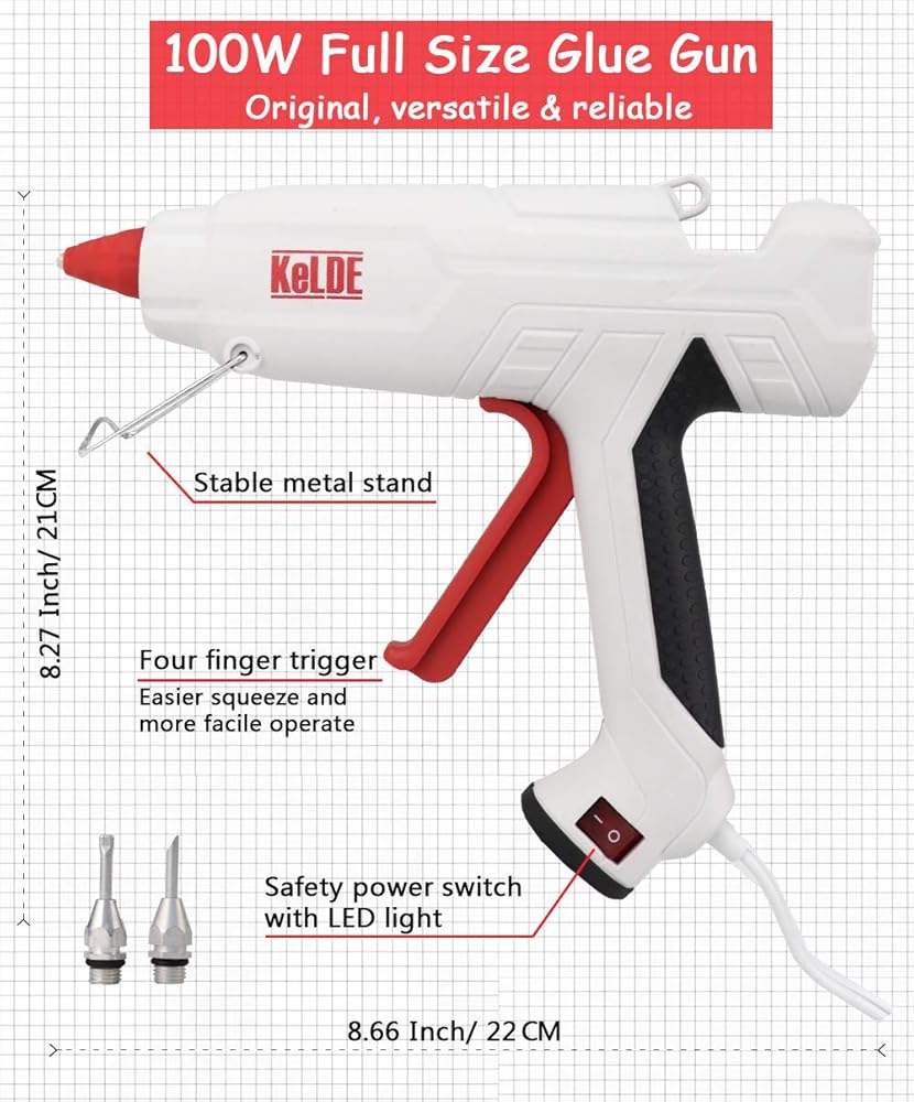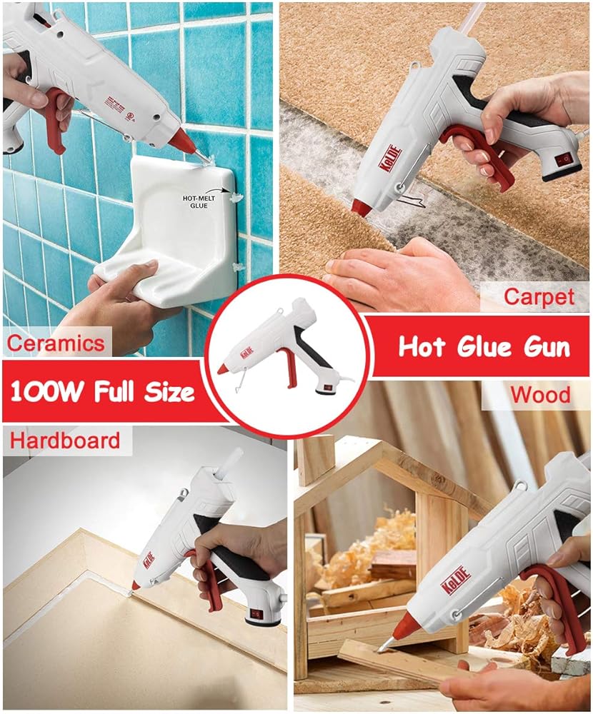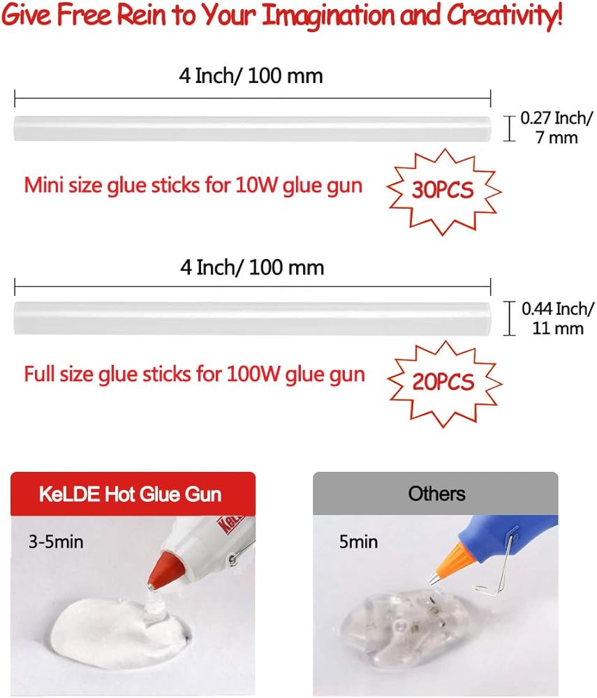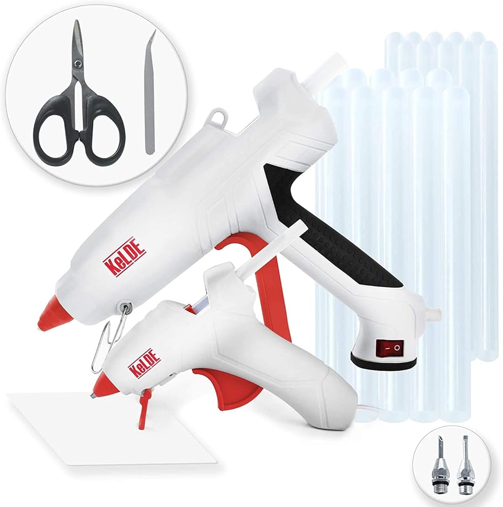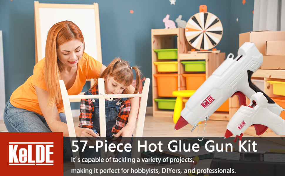 طقم مسدس غراء ساخن مكون من 57 قطعة، مسدس غراء شديد التحمل بحجم كامل 100 وات من KeLDE، مسدس غراء صغير إضافي بقدرة 10 وات، يتضمن قطعتين من النصائح الدقيقة الإضافية، و50 قطعة من أعواد الغراء للأعمال اليدوية والمشروعات اليدوية والإصلاحات