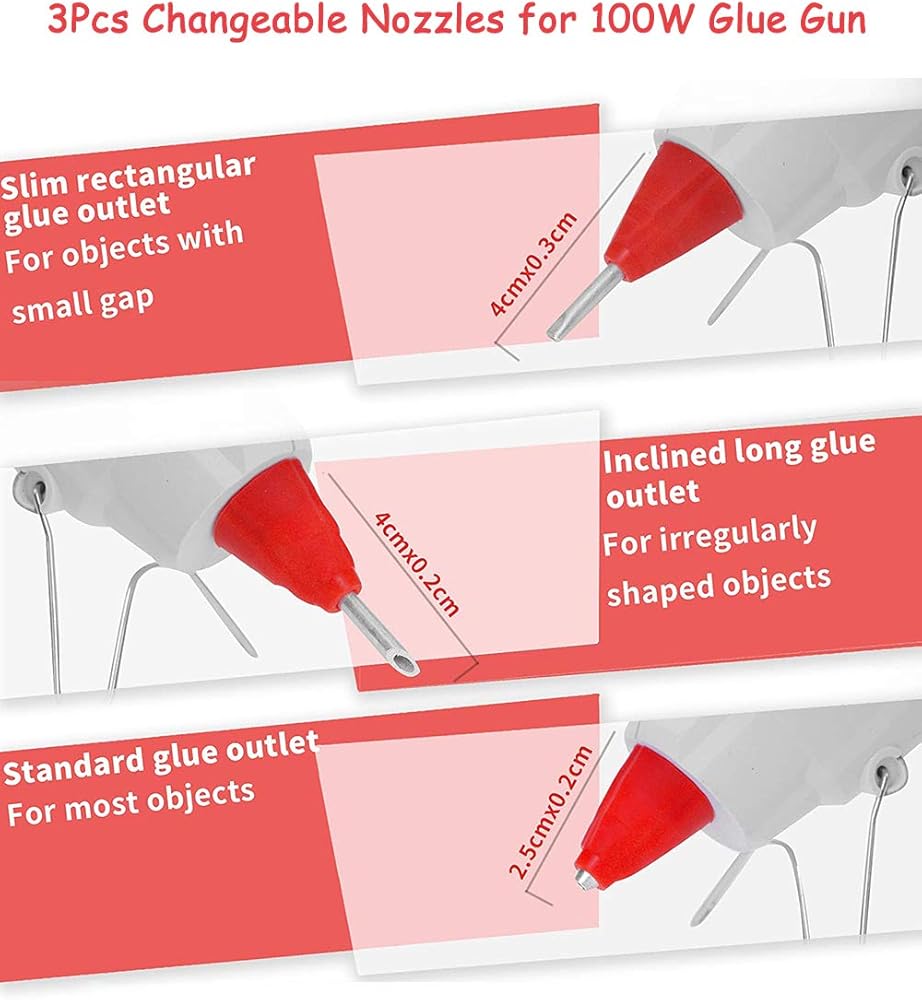 【فوهة قابلة للتغيير ومفتاح تشغيل/إيقاف الطاقة】- مع قطعتين من فوهة ذات طرف طويل قابلين للاستبدال، فإن مسدس الغراء الساخن الكبير هذا بقوة 100 واط مثالي لأي احتياجات في العمل، كما أن الزناد ذو الأربعة أصابع يجعل من السهل الضغط عليه؛ عندما تغادر قريبًا، ما عليك سوى إيقاف تشغيل زر الطاقة دون الحاجة إلى فصل السلك الطويل الإضافي.