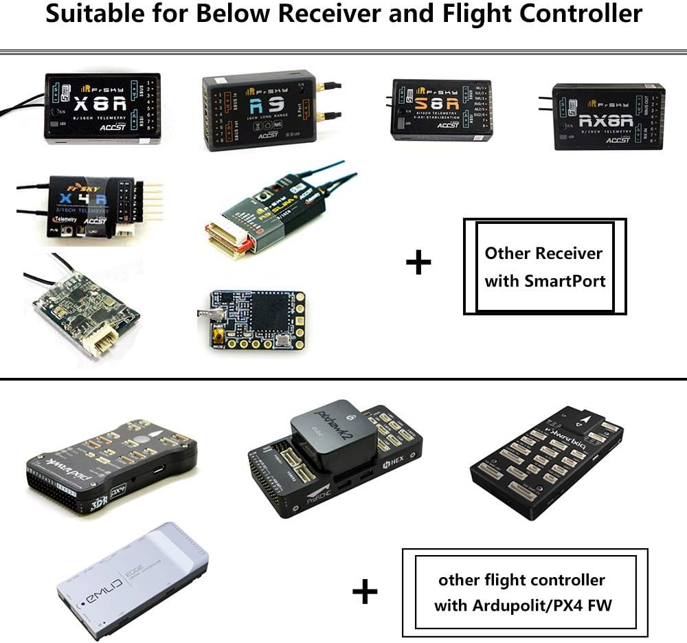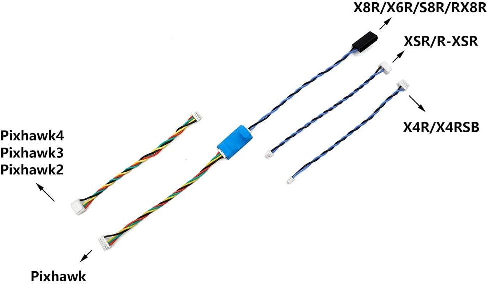 • يمكن لهذا الكابل تحويل القياس عن بعد من جهاز التحكم في الطيران الخاص بك (Pixhawk1, 2, 3, 4) إلى جهاز الاستقبال (R9 Slim+, R9, R9M, X8R, X4R, R-XSR, X6R, S8R, RX8R, X4RSB, XSR).