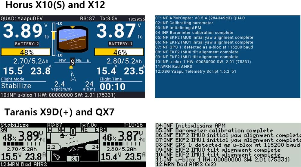 • تجعلك تحصل على جميع معلومات الطيران على شاشة جهاز الإرسال مثل جامبر T16، تارانيس X9D بلس QX7/X7S، هورس X10S X12S.