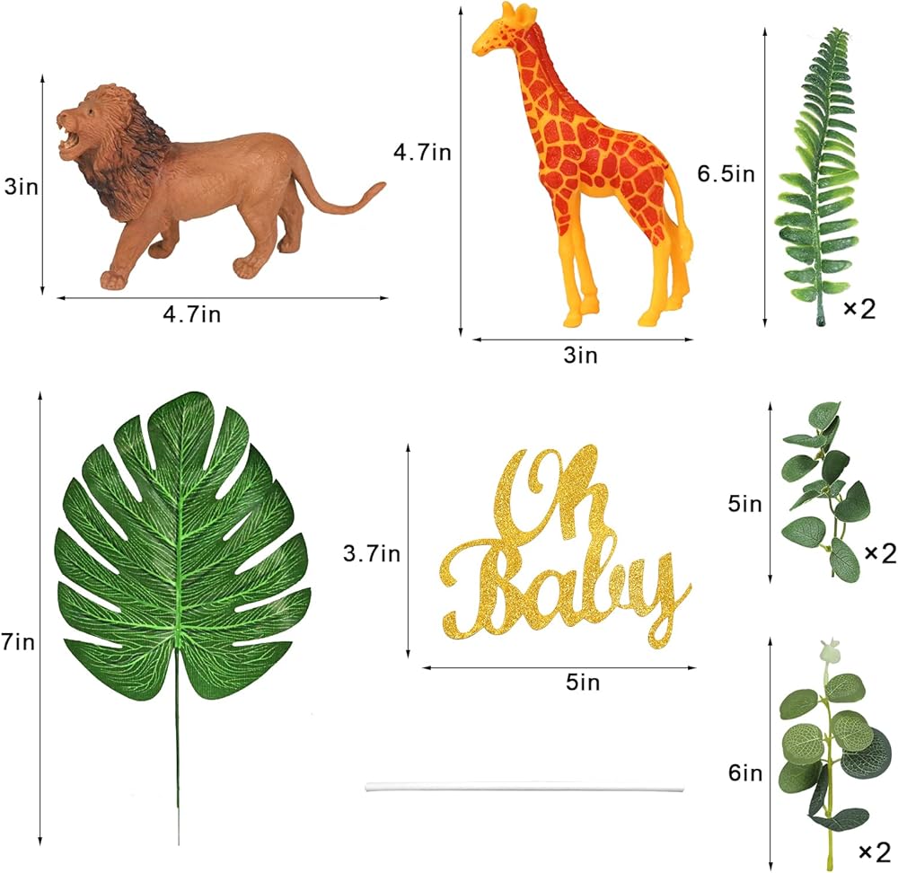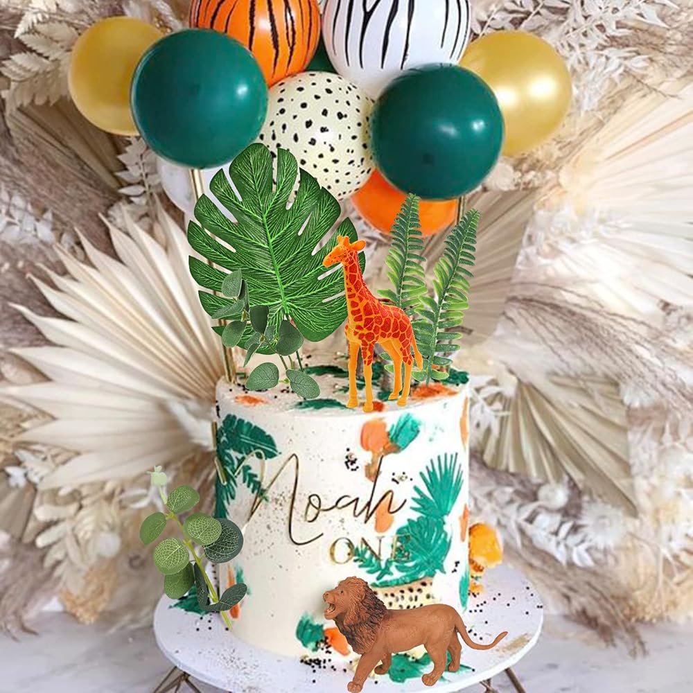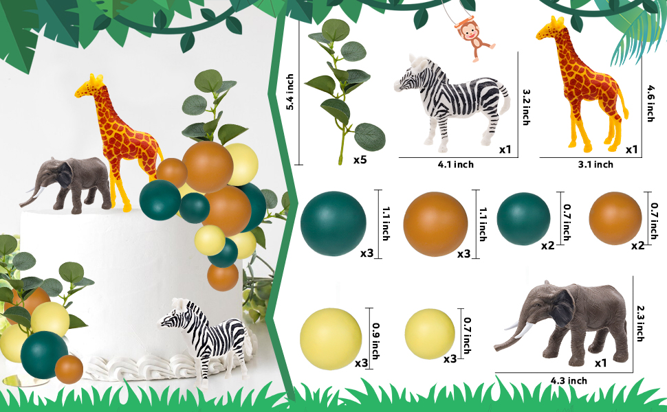 • 🦁【العبوة】تتضمن مجموعة ألعاب سفاري أنيمال زرافة وفيل وحمار وحشي و16 كرة علوية للكعك و5 أوراق خضراء. دع زينة كعكة الحيوانات اللطيفة ترافق أطفالك خلال يوم سعيد.
