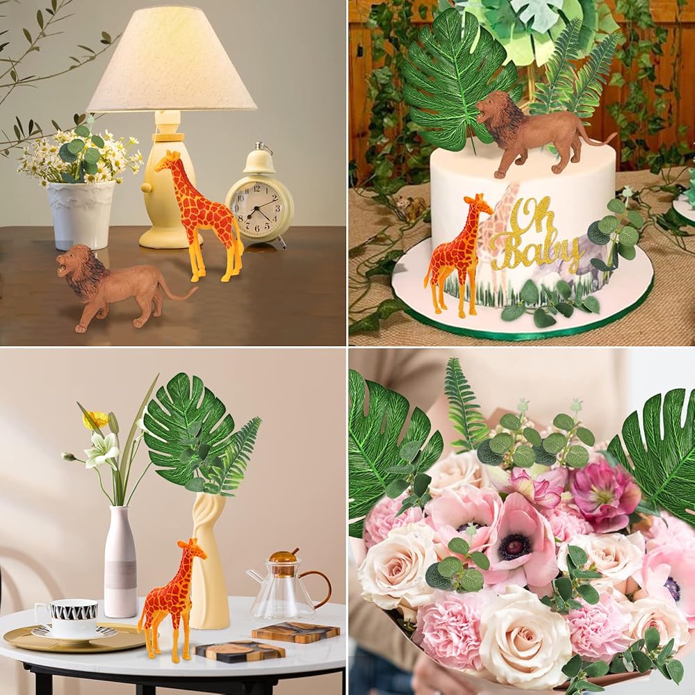 • 🦒【تفاصيل محاكاة واقعية】حيوانات الغابة مصنوعة من مادة PVC ذات مظهر مفصل واقعي للغاية، وآمنة ومتينة. الأوراق مصنوعة من قماش الحرير.
