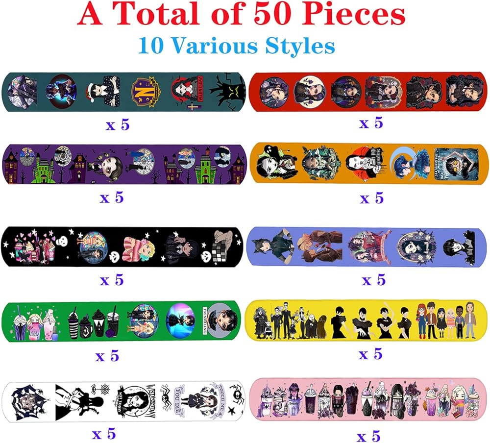 Anprola الأربعاء صفعة الأساور للأطفال الفتيات الأساور الطرف تفضل لوازم الديكور لحفلة عيد ميلاد أكياس جودي حشو المدرسة الفصول الدراسية الهدايا جائزة المكافآت 50 قطعة