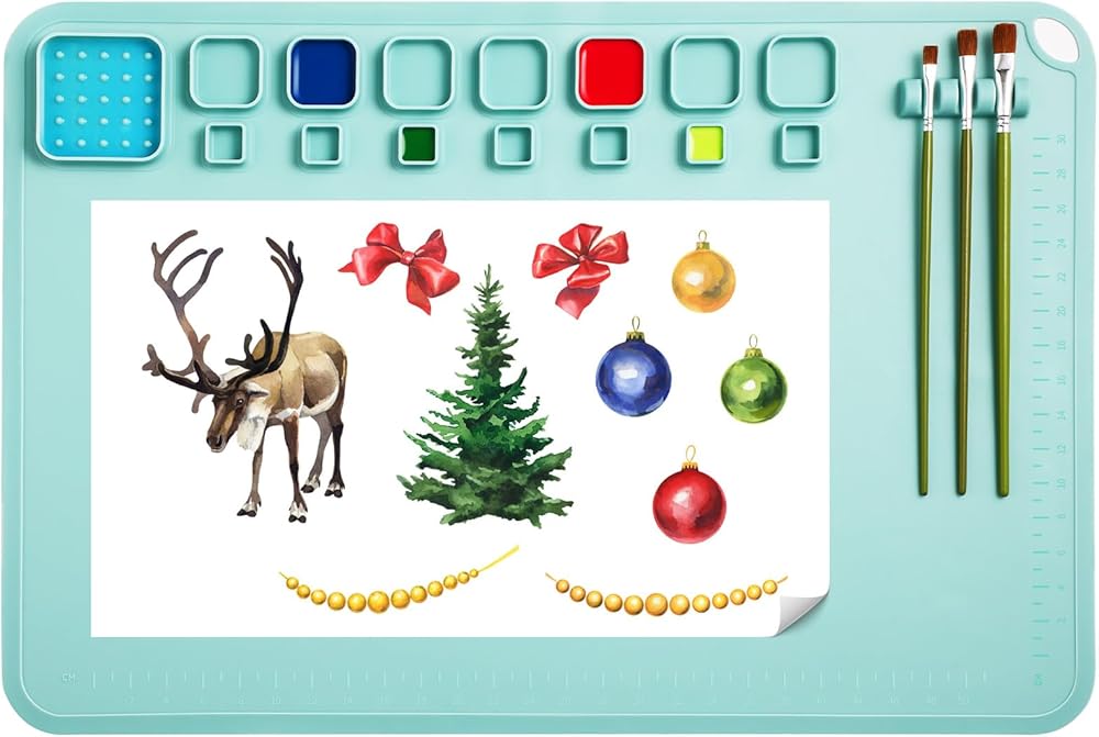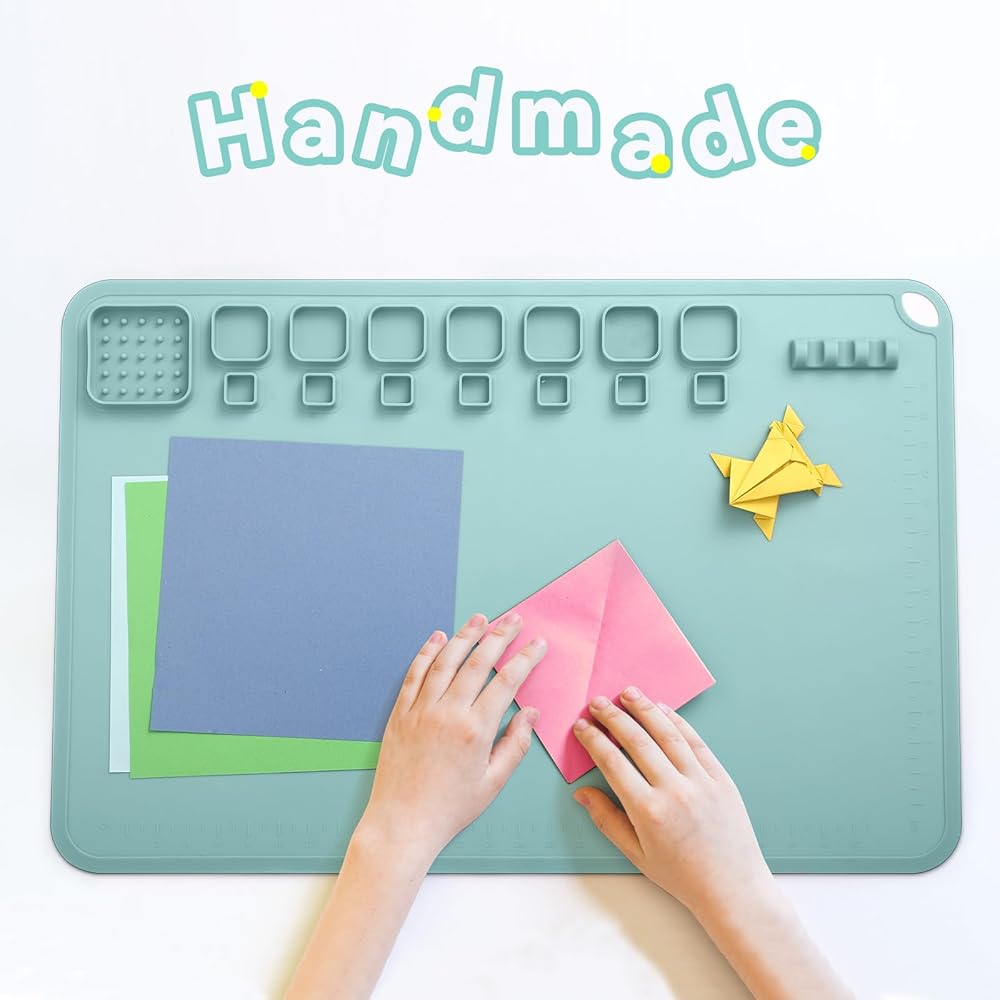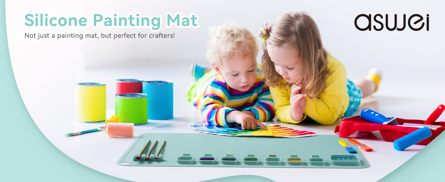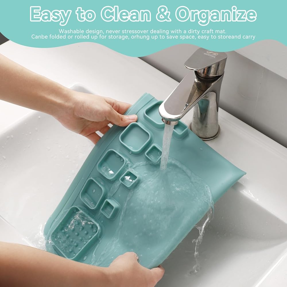 • 【ترقية حصيرة السيليكون للحرف اليدوية】تحتوي حصيرة السيليكون المطورة من ASWEI على فتحات مع نتوءات من أجل فرش نظيفة بشكل فعال. يوجد وعاء الطلاء وحامل الفرشاة في الجزء العلوي من الوسادة، مما يحافظ على نظافتها أثناء الإبداع بكفاءة. تم تصميم الجزء الأيمن والسفلي من هذه السجادة اليدوية بمقياس مناسب لإبداعك الفني.