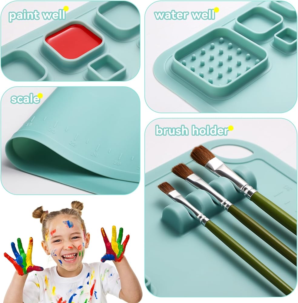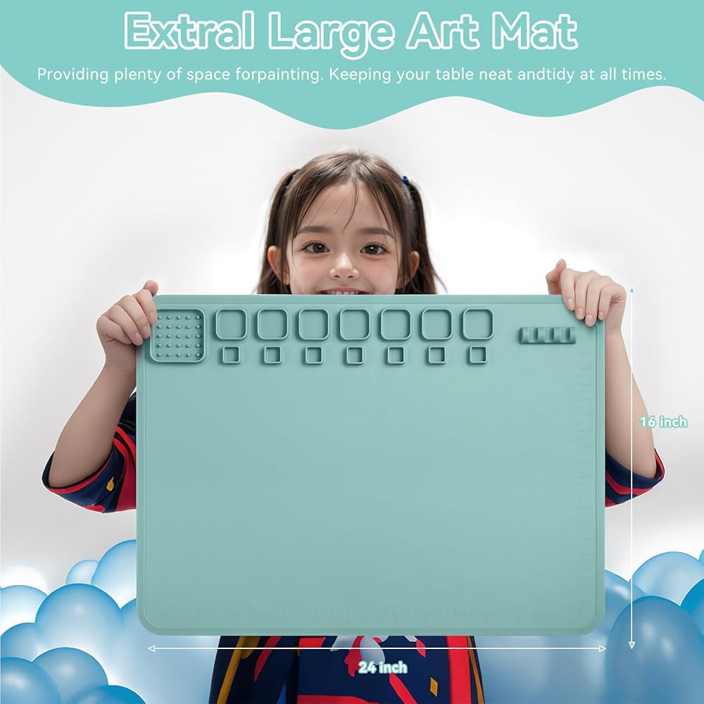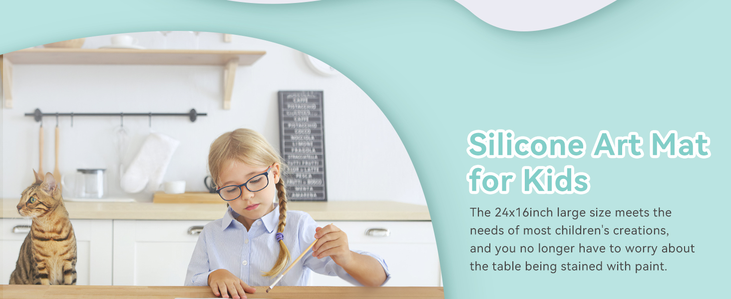 • 【سجادة طلاء كبيرة جدًا】سجادة رسم كبيرة جدًا من السيليكون بمقاس 60.96 سم × 40.64 سم، توفر مساحة كبيرة للأطفال للرسم. تلتصق مادة السيليكون بقوة بالطاولة، والحافة المرتفعة قليلاً تحافظ على كل شيء على السجادة الفنية. حافظ على طاولتك نظيفة ومرتبة في جميع الأوقات.