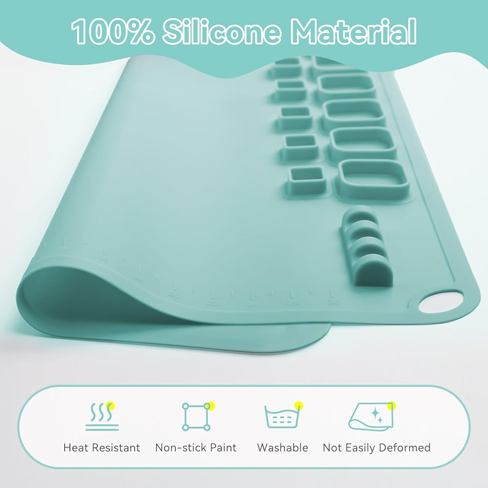 • 【حصيرة سيليكون عالية الجودة】مصنوعة من السيليكون عالي الجودة بنسبة 100%، وهو مرن وقابل للقطع، وطلاء غير لاصق، ومقاوم للماء، ومقاوم للحرارة، ولا يبهت، ولا يلطخ، ومتين ولا يتشوه أو يتمزق بسهولة.