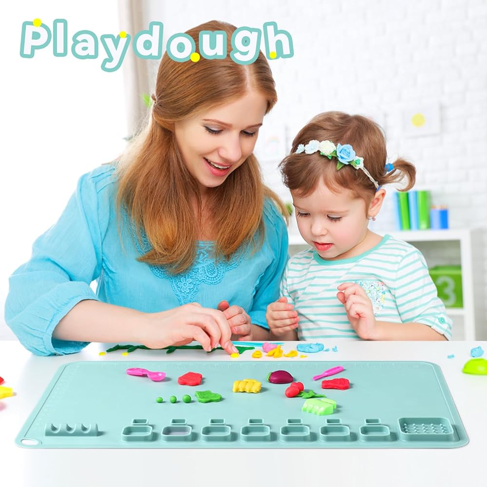 بساط رسم من السيليكون للأطفال من ASWEI، بساط فني كبير من السيليكون مقاس 60.96 سم × 40.64 سم وحصيرة حرفية مع 14 فواصل لونية، بساط رسم لهدايا الأطفال، طلاء الطين DIY Play Doh (الخزامى)