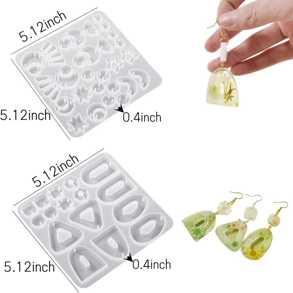 【Multiple sizes of jewelry casting molds】: 2 pieces earring molds set of 54 cavities including semicircle, square, teardrop, flower, triangle pendant, and more shapes