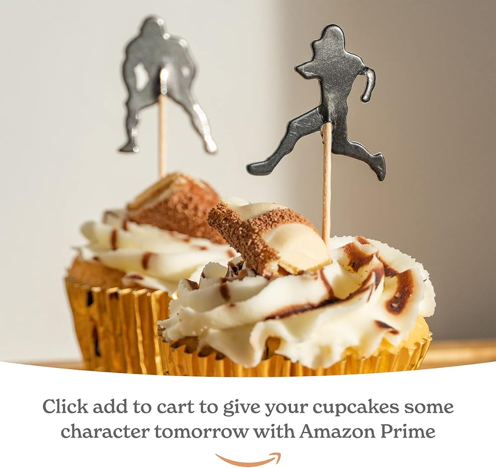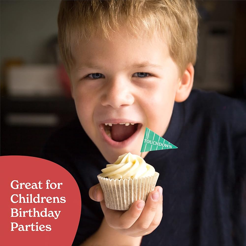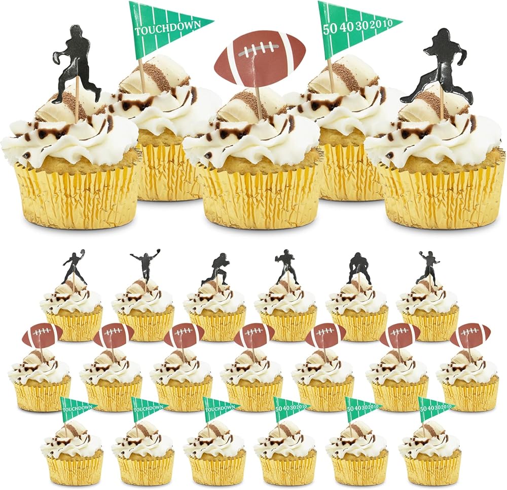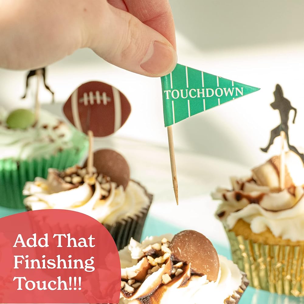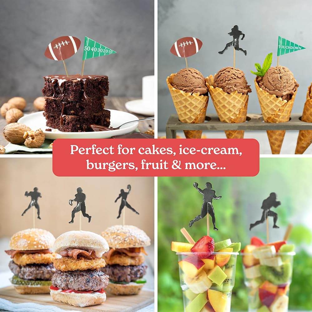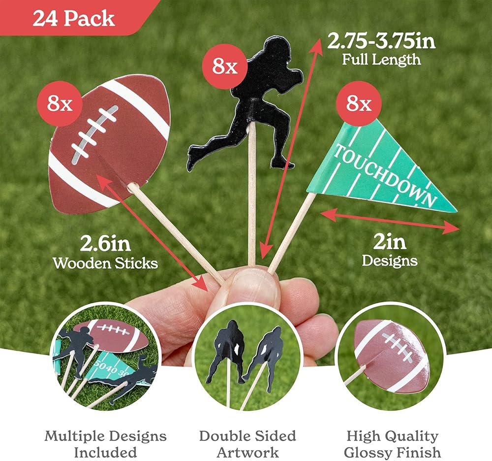 • تصميمات متعددة - إليك زينة كعكة كرة القدم الخاصة بنا [24 قطعة، تصميمات 2 انش، عصي 2.6 انش]. تتضمن العبوة: 8 × صور ظلية مختلفة، 8 × كرات قدم أمريكية، 4 × أعلام هبوط و4 × أعلام مرقمة. نقدم مجموعة رائعة من ديكورات كعكة كرة القدم لضمان تبرز الكب كيك الخاص بك.