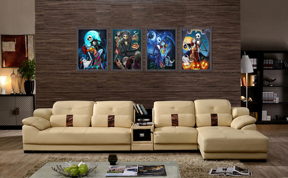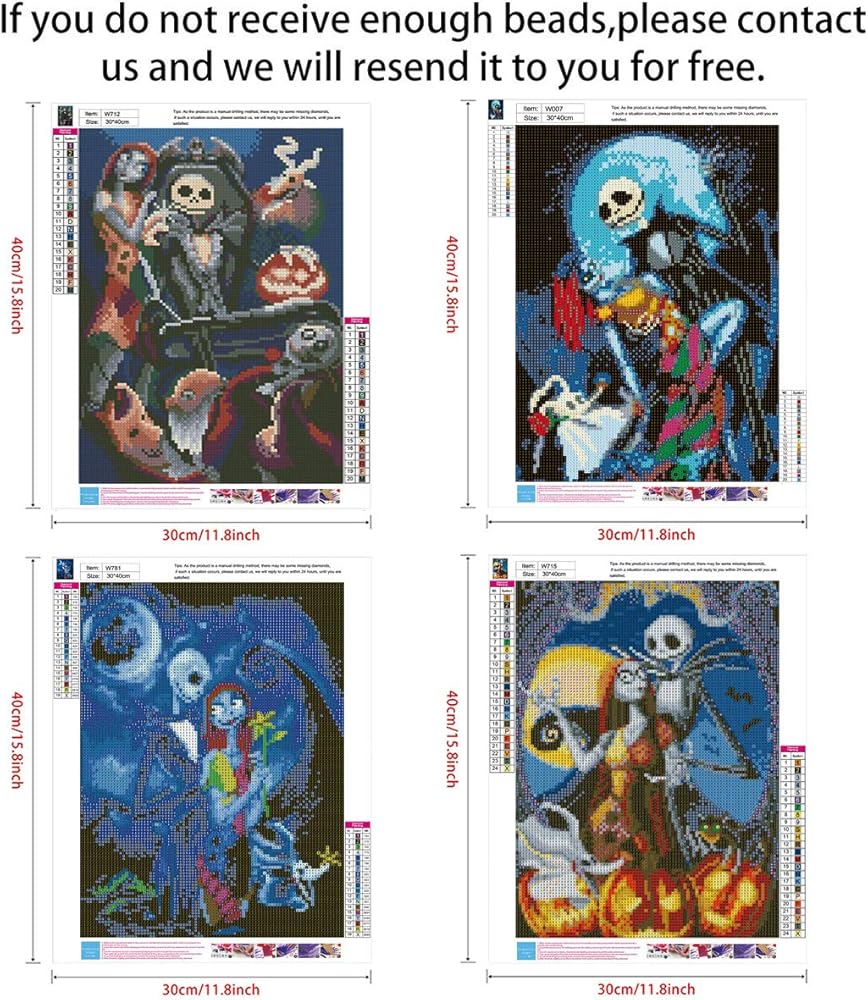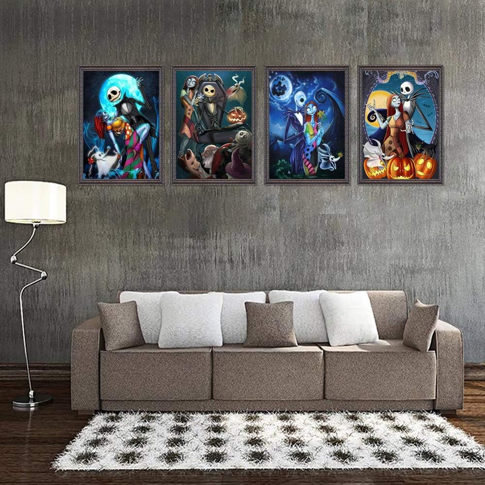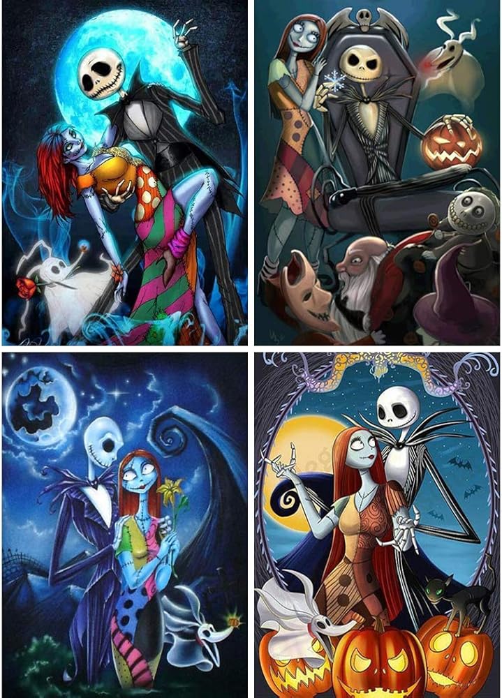 مجموعة من 4 قطع من الألماس المثقوب الكامل 5D، مجموعات طلاء أحجار الراين الماسية من UNIME للبالغين والمبتدئين، فن تطريز الحرف اليدوية، ديكور المنزل، 40.64 × 30.48 سم (جمجمة جاك القديسين)