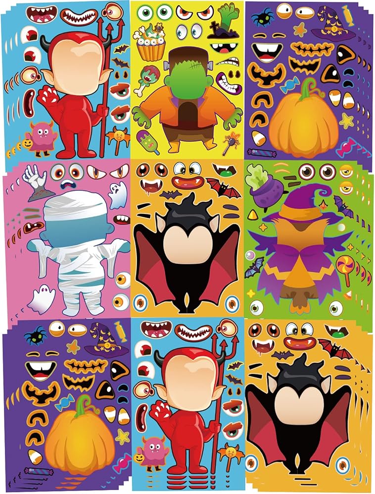 ✔️【EASY TO USE】Our Halloween make your own stickers are great DIY crafts, just need to peel and paste the stickers on the main body. Kids can make different monster stickers to decorate their notebooks, very funny Halloween stickers can surprise their classmates.