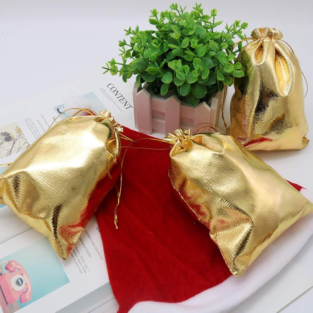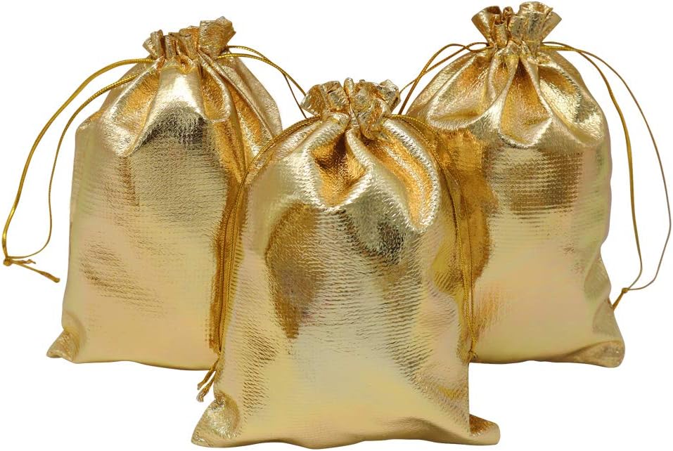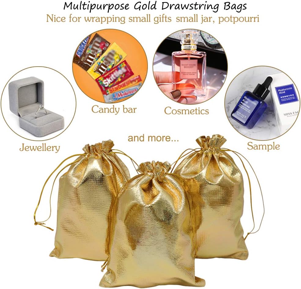 حقائب هدايا متعددة الأغراض - حقائب الهدايا الذهبية هذه هي أيضًا حقائب مجوهرات رائعة، وحقائب حلوى، لطيفة للمناسبات الاحتفالية والاحتفالات مثل الهالوين والكريسماس وعيد الشكر والذكرى السنوية وحفلات استقبال المولود الجديد وحفلات التخرج