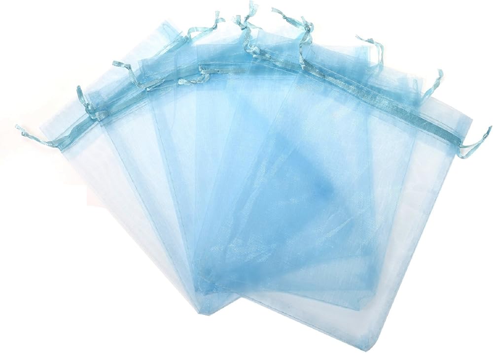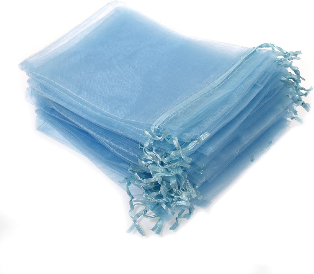 KUPOO مجموعة من 50 7" x 9" جراب قوي من الأورجانزا هدية لحفل زفاف قوي حقيبة حلوى (أزرق سماوي)