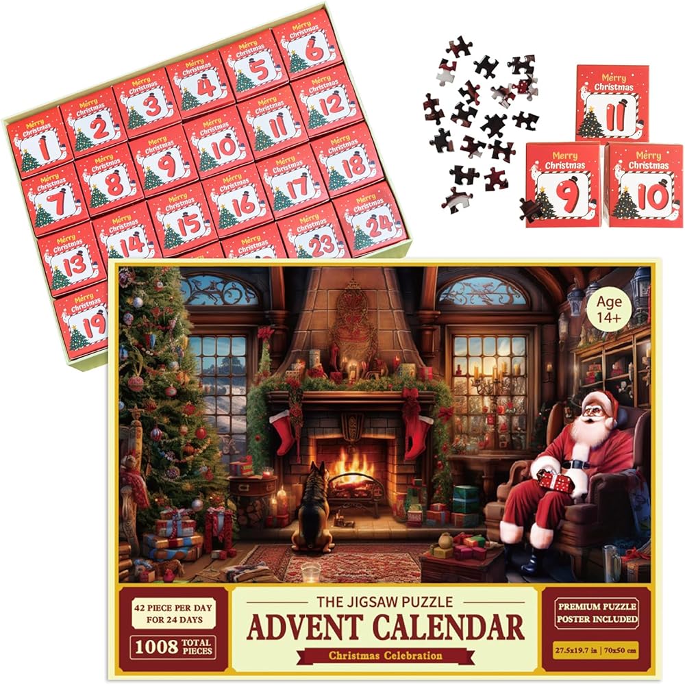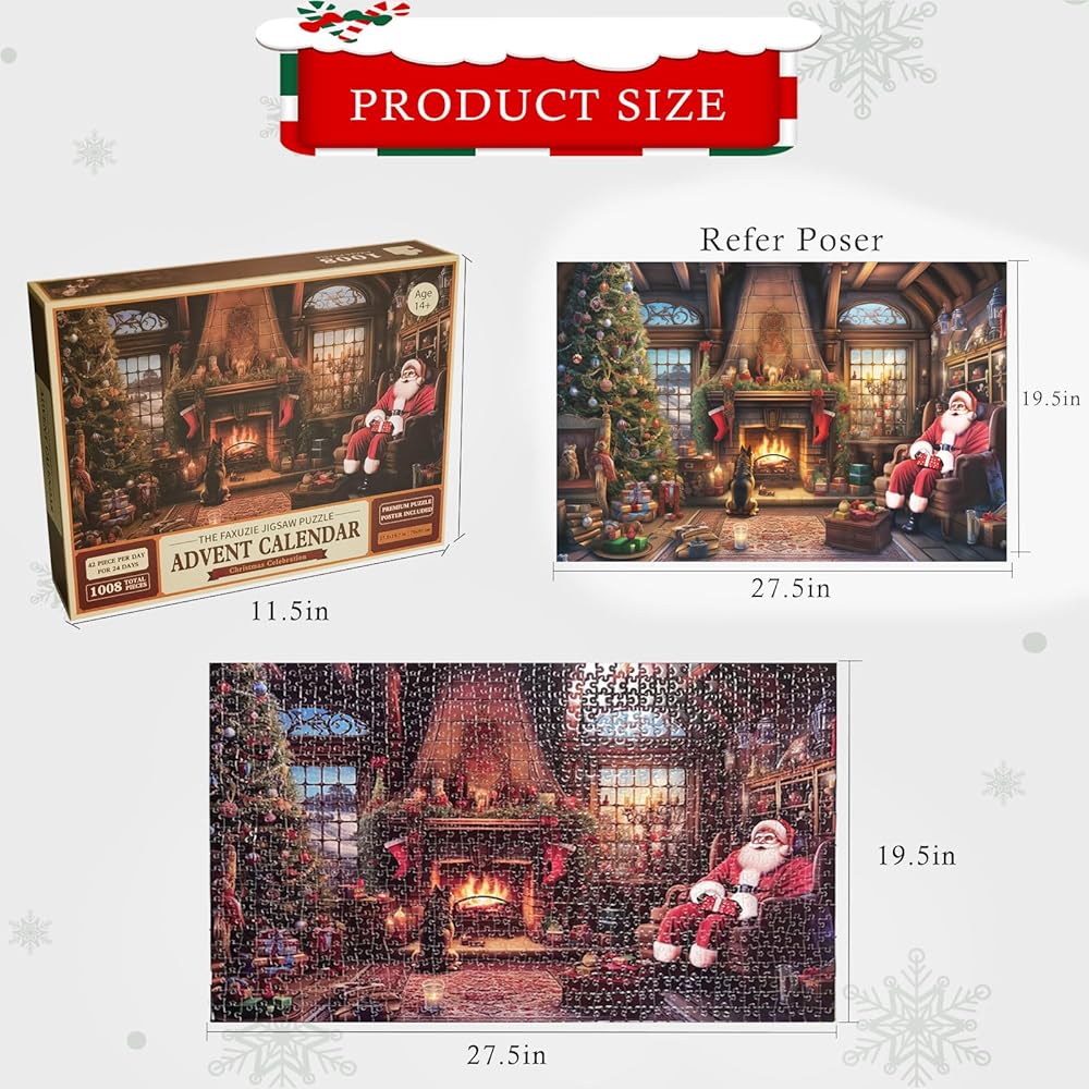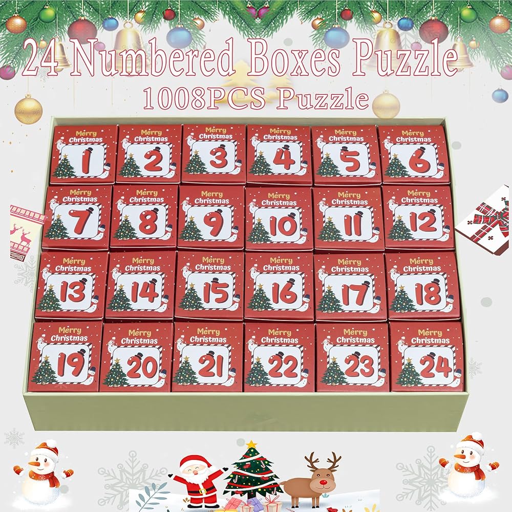 4. تصميم فريد: يتميز تقويم المجيء الخاص بنا بتصميم فريد من نوعه يظهر إثارة موسم العطلات. يكشف كل يوم عن قطعة أحجية جديدة، مما يجعلك أقرب إلى إكمال المشهد الاحتفالي.