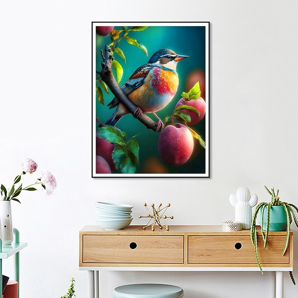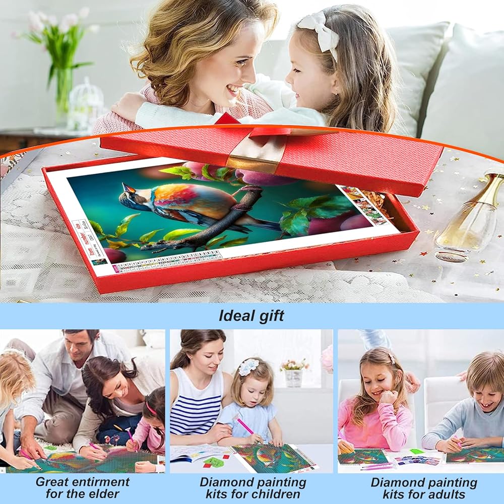 مجموعات الطلاء الماسي من Acudotr للبالغين، مجموعات فنية ماسية خماسية الأبعاد للمبتدئين، مجموعات طلاء ماسية كاملة الحفر لديكور جدار المنزل، الطيور، 12 × 16 بوصة