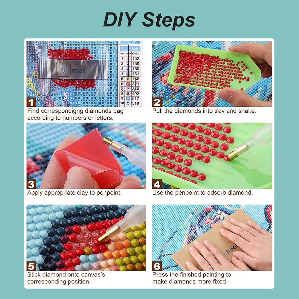 العبوة والحجم - تأتي العبوة مع قماش الكتان والماس ومجموعة الأدوات والطين. يرجى ملاحظة أن اللوحة الماسية الكاملة لا تتضمن الإطار. 12*12 بوصة هو حجم القماش بالكامل، بما في ذلك المساحة الفارغة. إذا كنت تريد المزيد من الأنماط، يرجى النقر على Acudotr