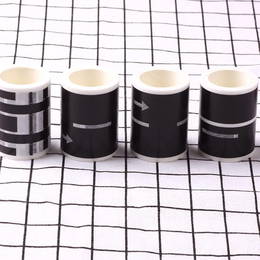 • شريط أسود - 4 قطع من أشرطة الطرق اللاصقة وخطوط المرور على الشريط وعلامات المرور نابضة بالحياة. أربعة أنماط مختلفة من أشرطة الطرق وعلامات المرور المختلفة، تجلب لك تجربة.