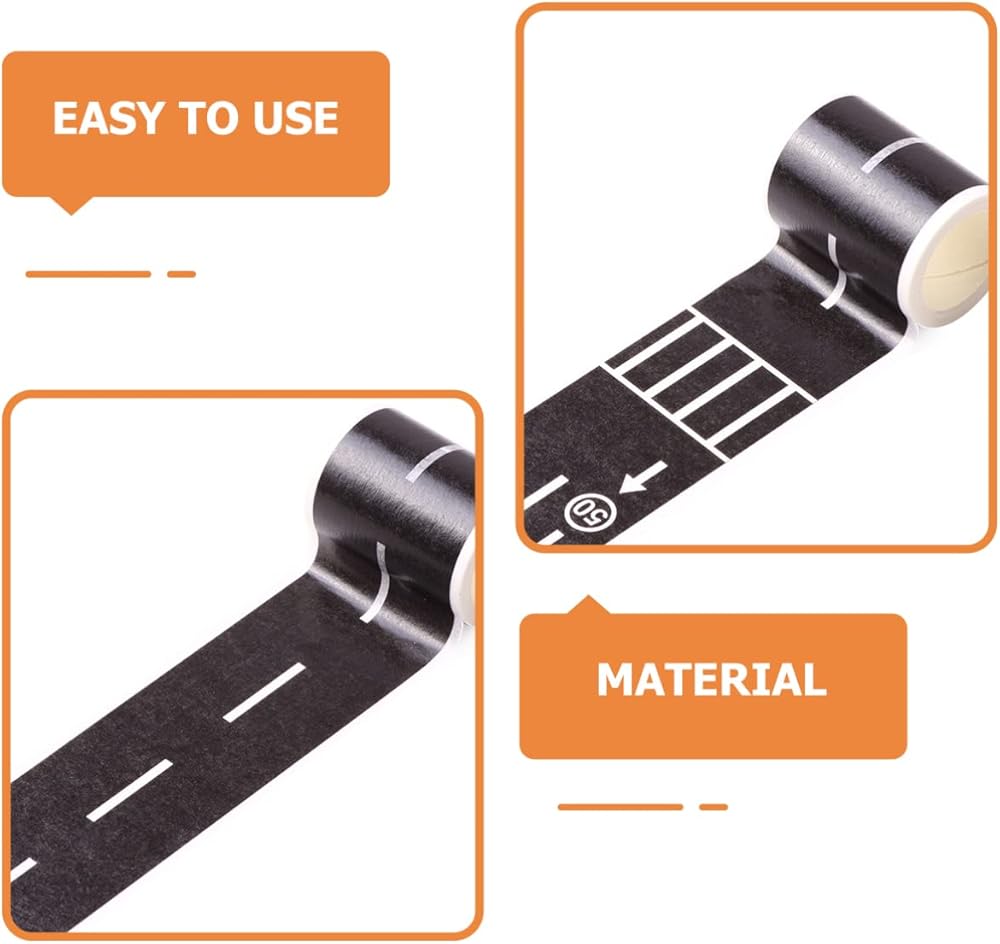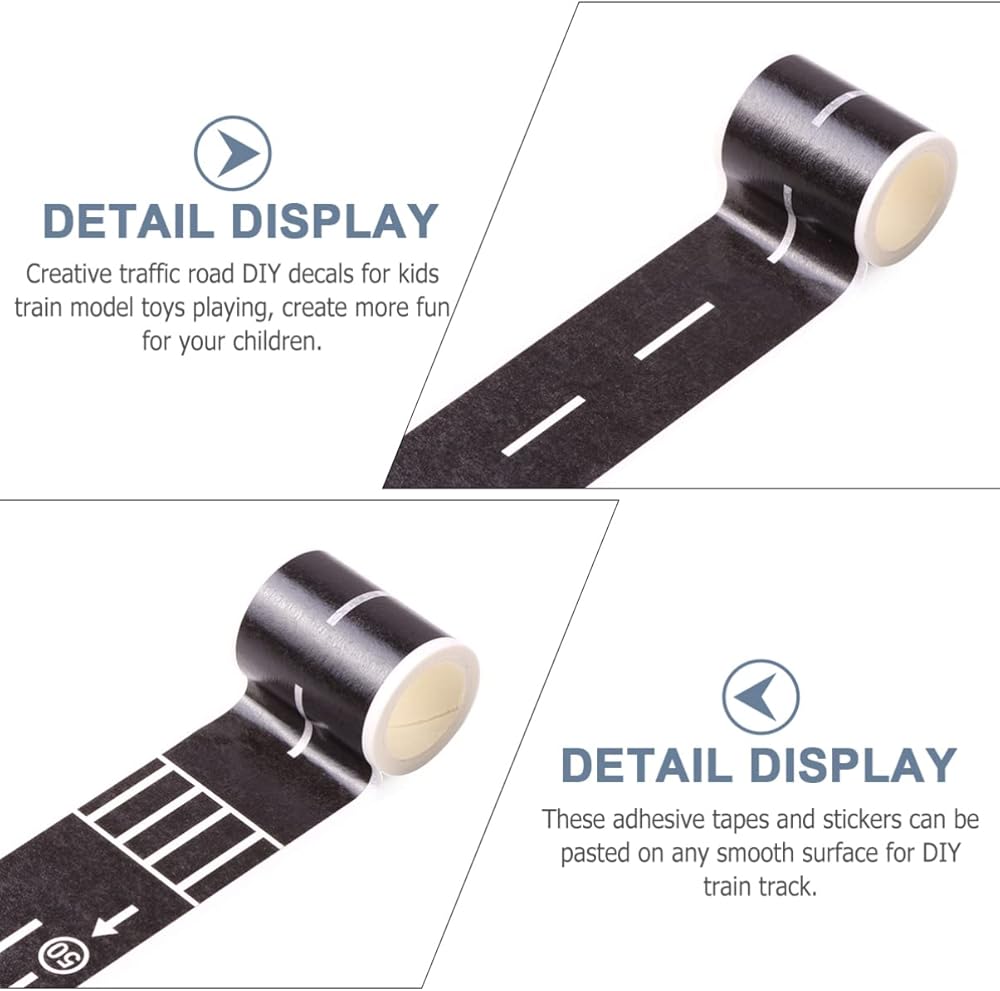 • سهل الاستخدام - الشريط مصنوع من ورق واشي، يمكن تمزيقه بسهولة من الطفل ولا يحتاج إلى مقص. يمكن لصق هذه الأشرطة اللاصقة والملصقات على أي سطح أملس لمسار القطار الذي تصنعه بنفسك.