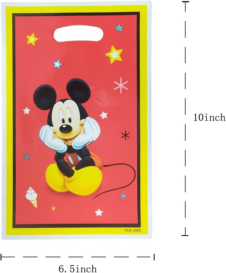 1. قائمة محتويات العبوة: 30 حقيبة هدايا ميكي بمقاس حوالي 10 بوصة × 6.5 بوصة (الطول × العرض).