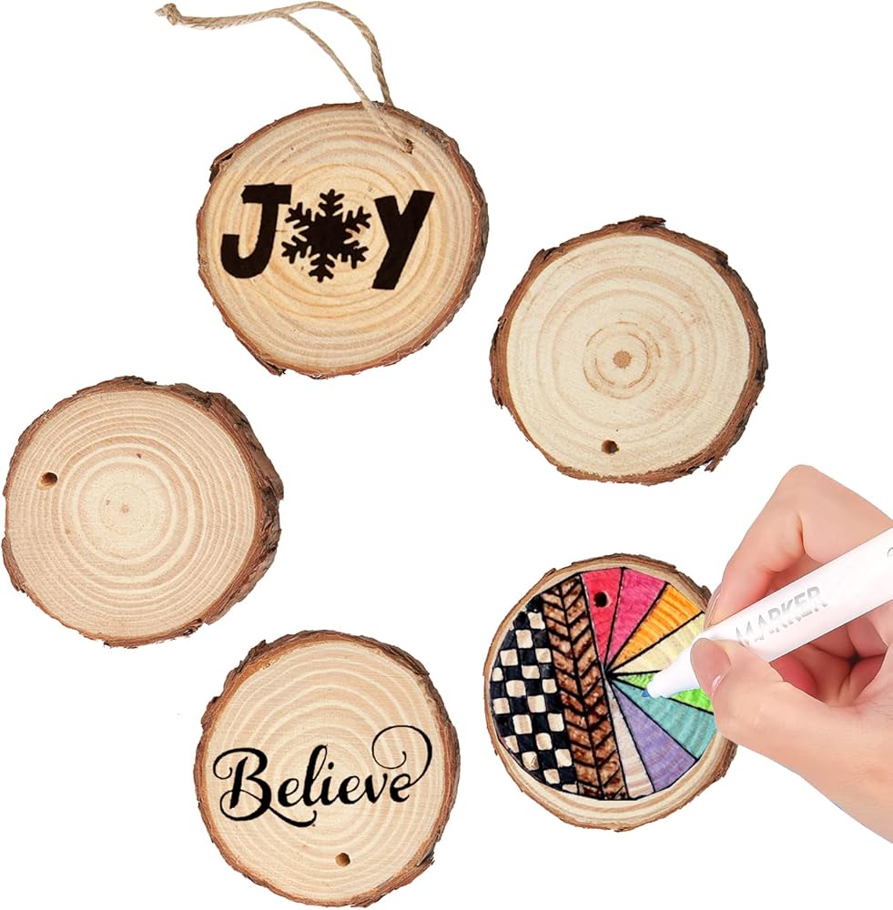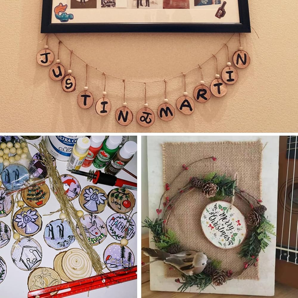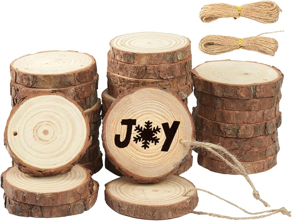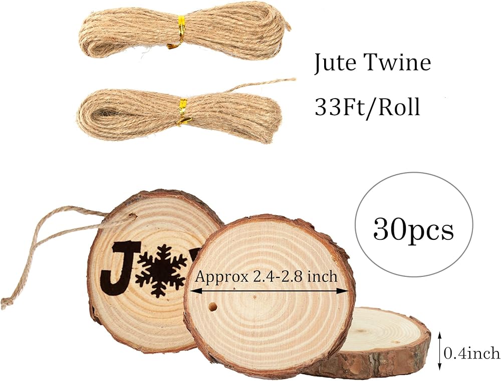 دوائر خشبية مثقوبة مسبقًا - تأتي مع لفتين من خيوط الجوت، يبلغ طول كل منهما 33 قدم، مما يجعلها سهلة التعليق، رائعة لصنع زينة الكريسماس أو بطاقات الهدايا.