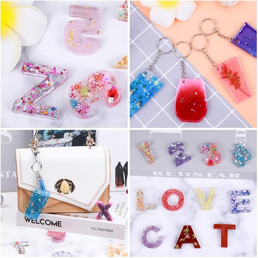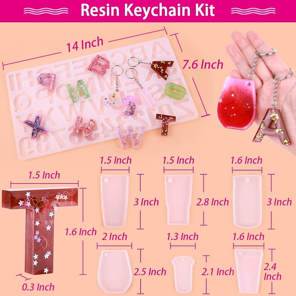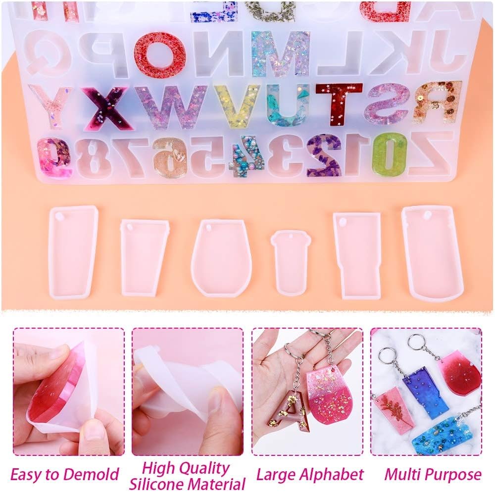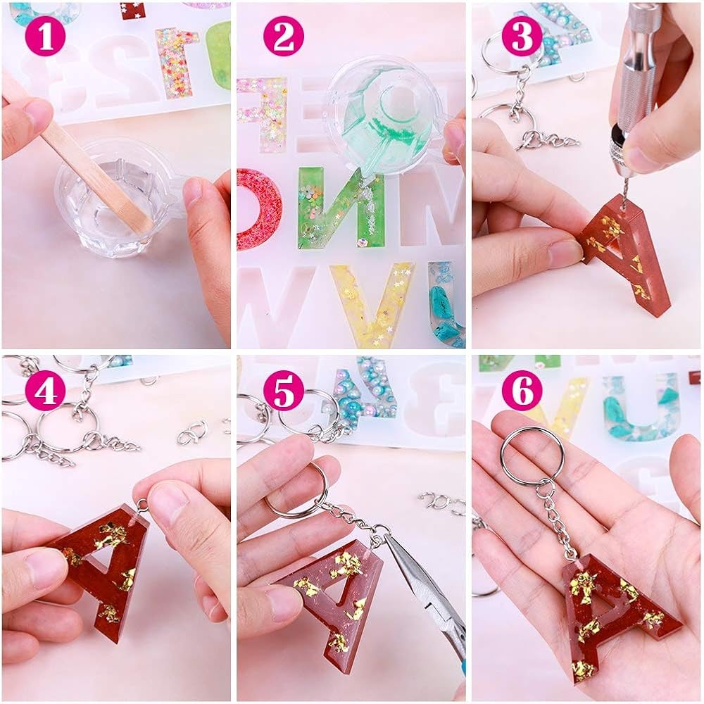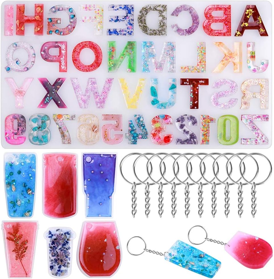 【قالب الحروف الأبجدية للراتنج】تتضمن مجموعة سلسلة المفاتيح المصنوعة من الراتنج من انيزوس 7 قوالب راتنج إيبوكسي مكونة من قطعة واحدة من قالب حروف الراتنج، و6 قطع من قوالب سلسلة المفاتيح المصنوعة من السيليكون، و30 قطعة من سلسلة المفاتيح مع سلسلة، و50 قطعة من الدبابيس الحلقية، و50 قطعة من حلقات الوصل