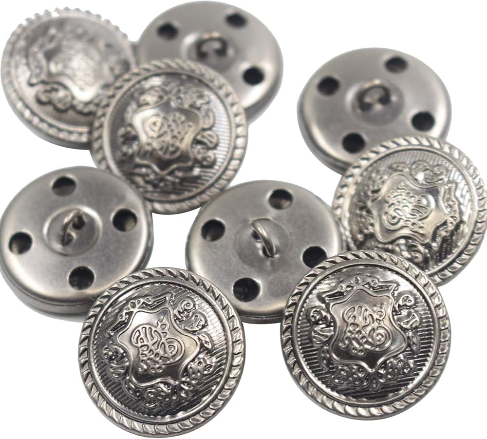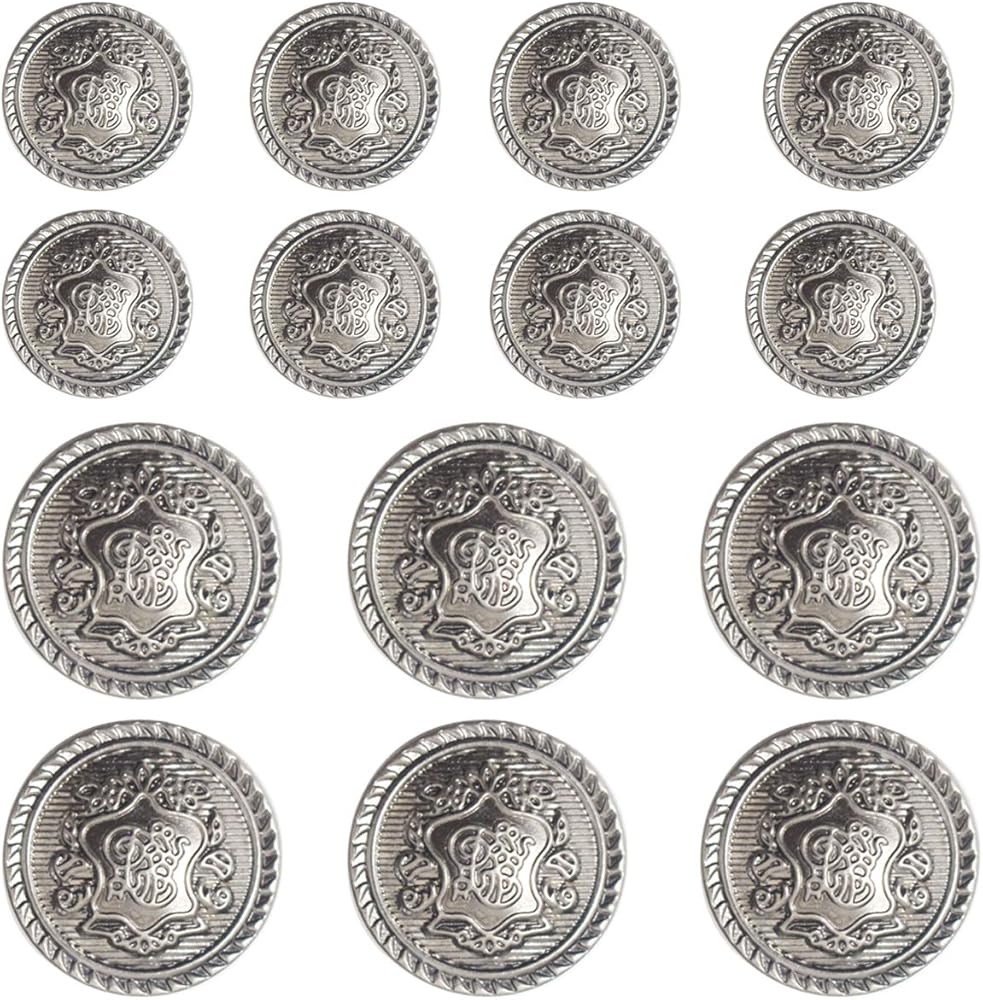 مجموعة أزرار بليزر معدنية من النحاس العتيق (البرونزي) 14 قطعة - Vine Crest - للبلازر، الدعاوى، معطف رياضي، موحد، جاكيت (فضي داكن عتيق) 15 مم 20 مم