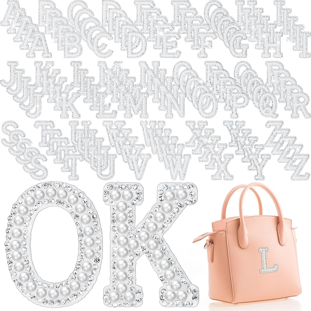 130 قطعة من رقع حجر الراين واللؤلؤ على الكي من جليتينسيل، رقع حروف لامعة مزينة باللؤلؤ مزينة بالكي على الحروف الابجدية الانجليزية من A-Z لاصلاح الحرف اليدوية