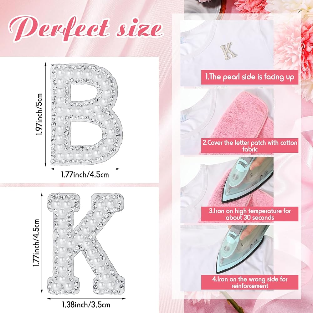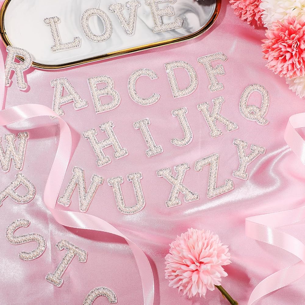 تصميم أنيق ولامع: مصممة من اللؤلؤ لتهجئة حروف A-Z، رقعة الحروف محاطة بزخارف من حجر الراين اللامع تضيف لمسة من الأناقة والسحر إلى أي ملابس؛ إنها زخارف رائعة تعزز على الفور جماليات ملابسك بأسلوبها الرقيق والرائع