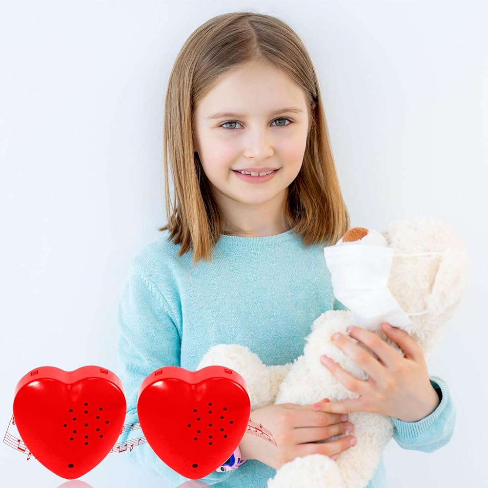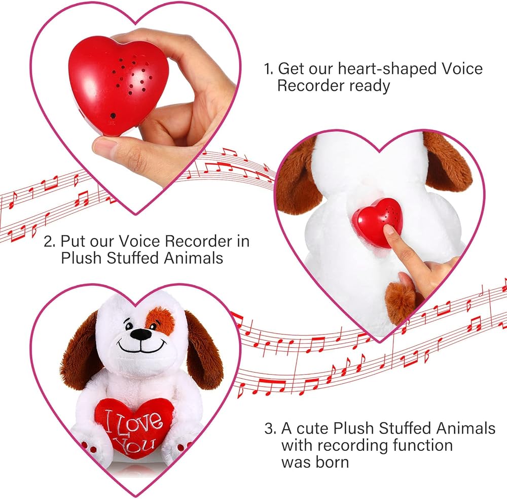 كيفانير 4 عبوات من مسجل صوت 60 ثانية لحيوان محشو على شكل قلب احمر بزر ضغط على شكل قلب، جهاز تسجيل صوت قابل للتسجيل للعبة الدب المخملي وتسجيل الرسائل الصوتية وعيد الحب