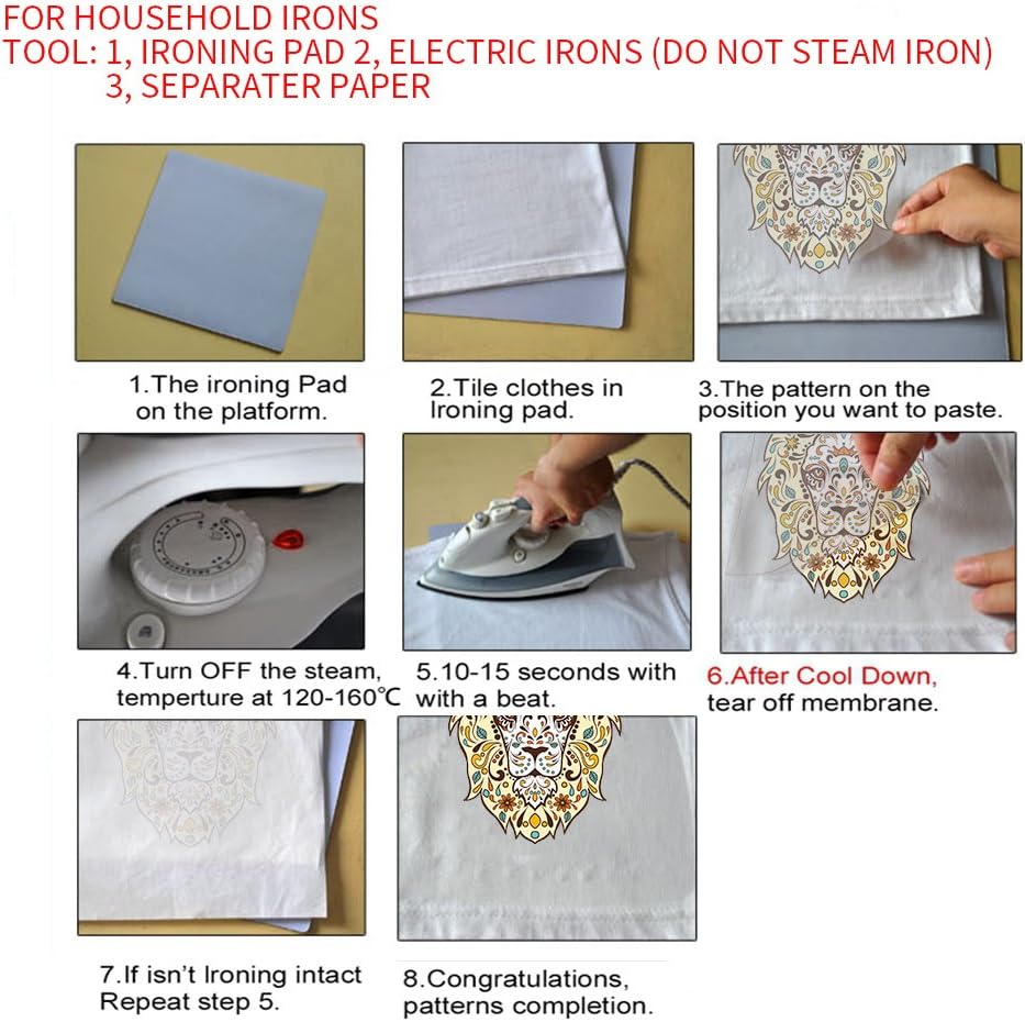 أدوات الاستخدام: مكواة منزلية أو آلة نقل الحرارة (راجع تعليمات الاستخدام في العبوة)