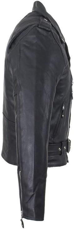 • QUALITY MATERIAL: Men's Motorcycle Jacket in Premium Cowhide Leather. This timeless jacket gets better with age. You can pay more but won't find a leather jacket of this quality for this price. Traditional biker jacket is made of cowhide. cowhide leather provides an attractive finished product at a lower cost than the top or grain layer of the hide. This is a quality thick cowhide leather jacket that will get better with age.