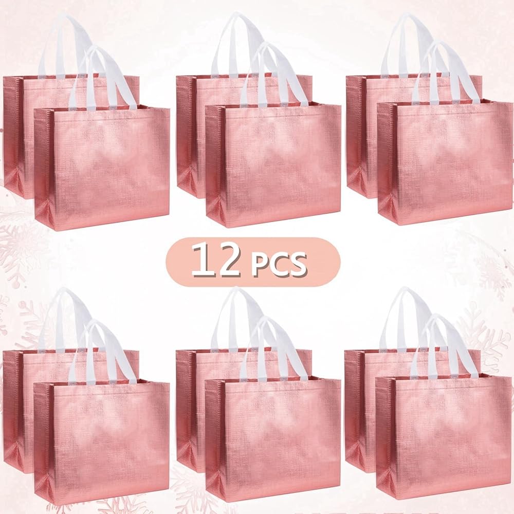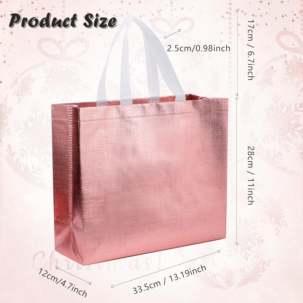 • 💗أكياس هدايا مع مقابض: 12 قطعة من حقائب الهدايا باللون الذهبي الوردي بتصميم لامع بلون ذهبي وردي لمظهر لامع وأنيق وفريد من نوعه سيجعلك مركز الاهتمام أينما ذهبت.