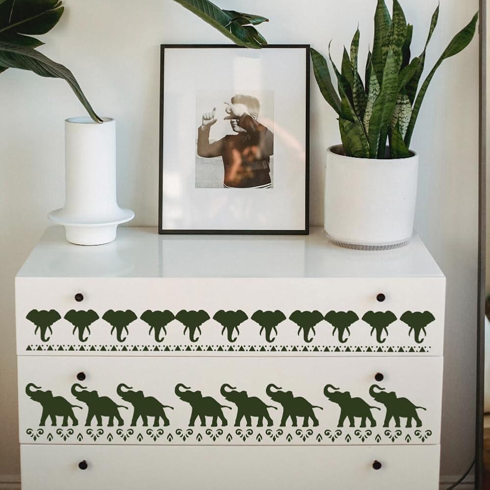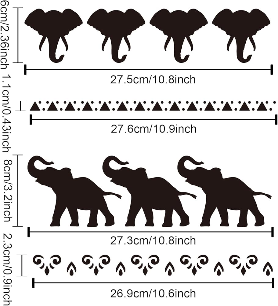 • استنسل الفيل: يتكون الاستنسل البلاستيكي الخاص بنا من 3 رؤوس فيل و4 رسومات جانبية على شكل فيل ونمط زهور. مثالية للديكور الداخلي للمنزل. اجعل حياتك فنية وممتعة.