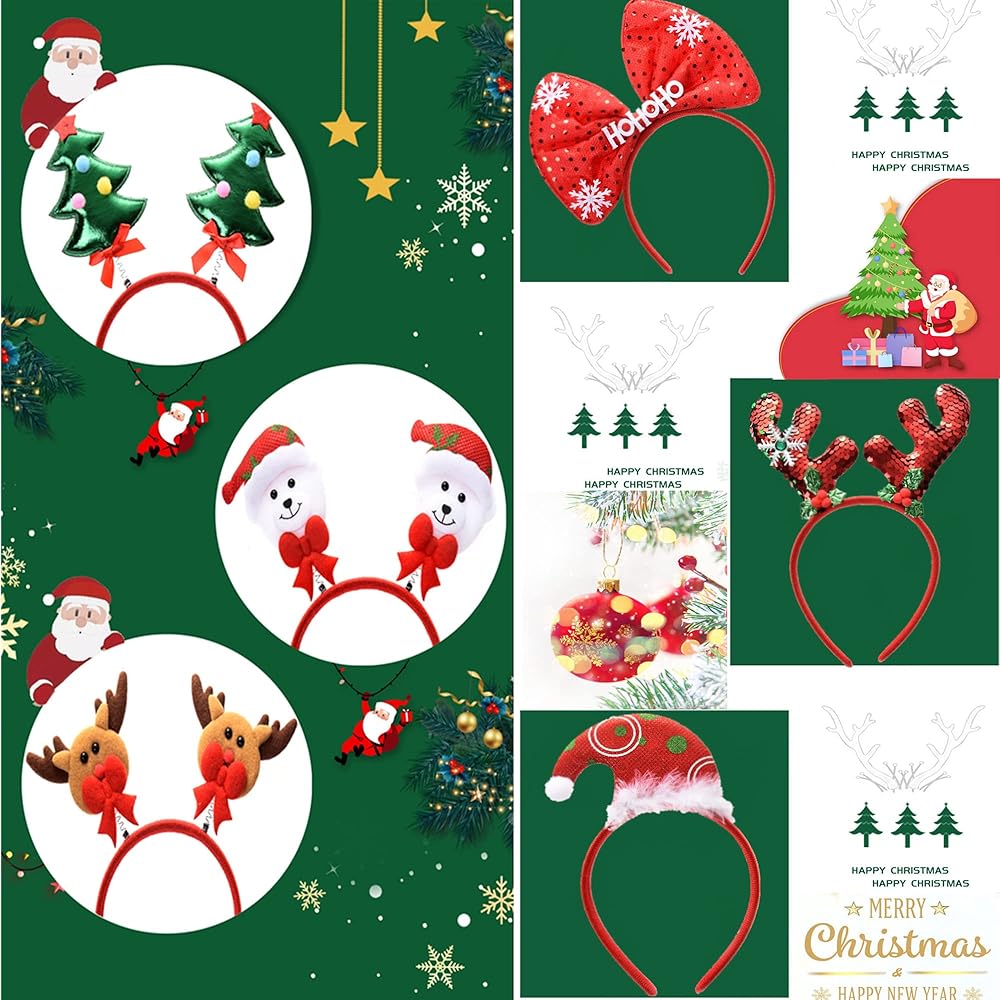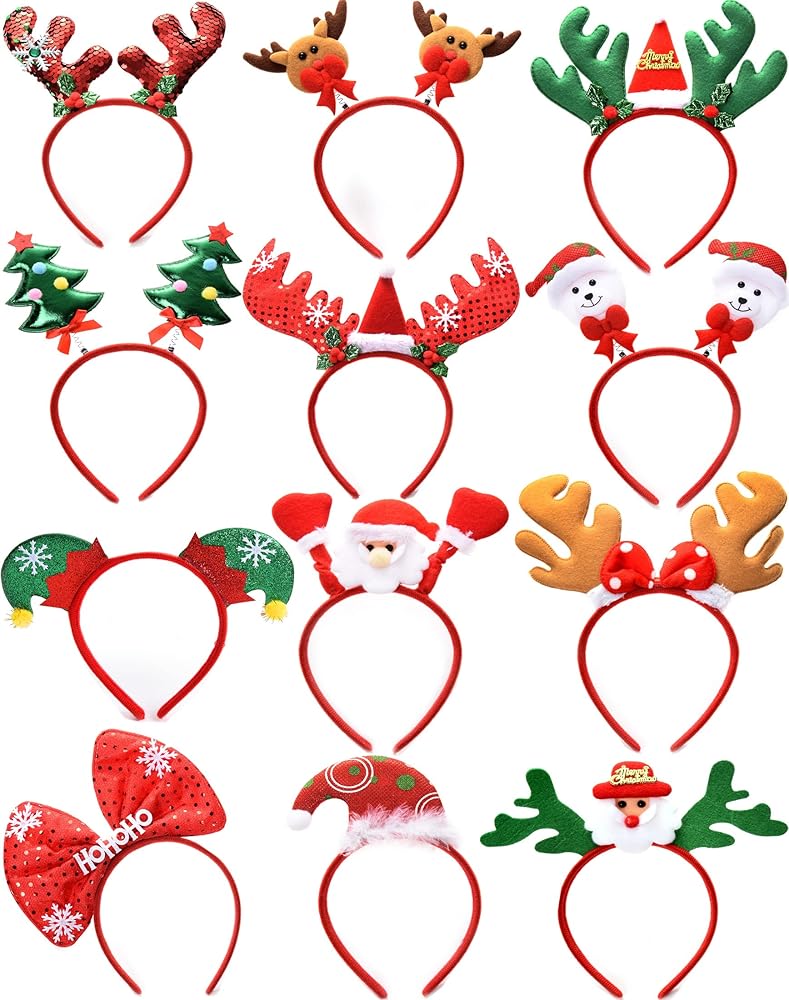 12 قطعة من عصابات الرأس للعطلة: عصابات عيد الميلاد المبتكرة تبدو متنوعة لطيفة وناعمة الملمس. عصابات رأس عيد الميلاد ستكون نجاحاً هائلاً وسيحب الأطفال بالتأكيد عصابات الرأس هذه في الأعياد. عصابة رأس عيد الميلاد مصنوعة من البلاستيك الفاخر والنسيج الناعم، خفيفة الوزن ومريحة للارتداء. ربطات الرأس لحفلات عيد الميلاد مناسبة للأطفال والكبار. مجموعة عصابات رأس عيد الميلاد من ADurable Christmas ويمكنك ارتداء عام آخر! تضيف شعور احتفالي إلى المنزل فقط حولها! أنت يمكن حزمها في عيد الميلاد القادم!