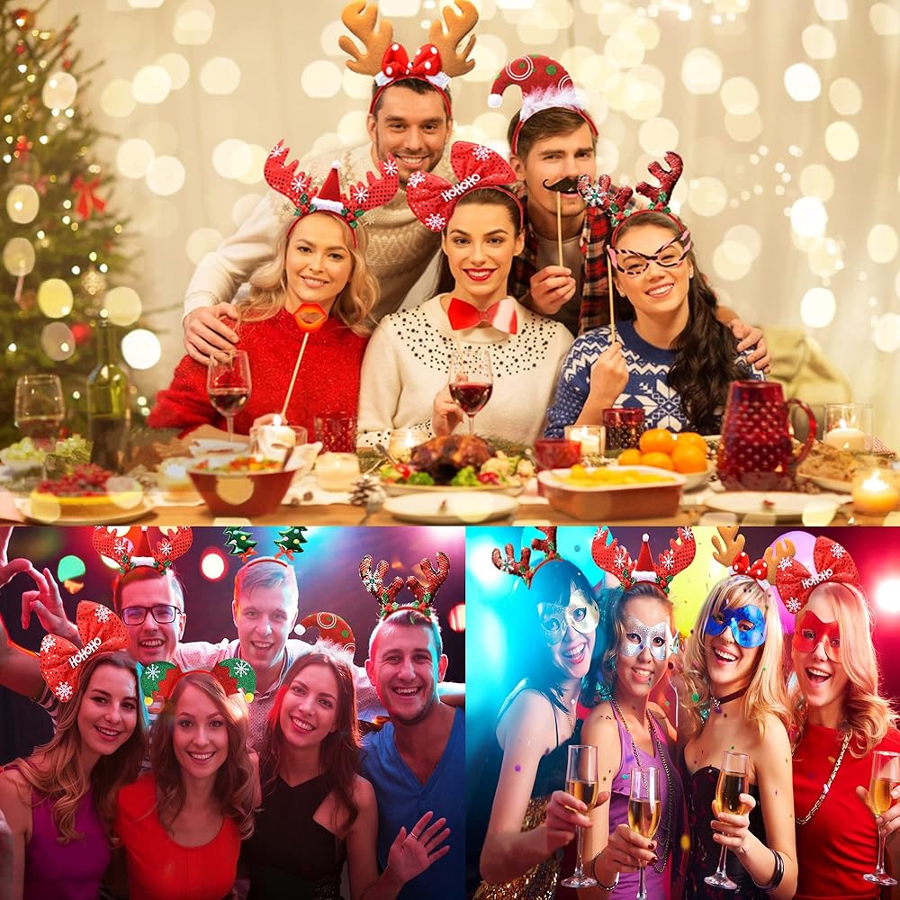 هدايا رائعة لحفلات عيد الميلاد: يمكن استخدام عصابات رأس عيد الميلاد كهدايا للحفلات، وهدايا إرجاع في حفلة العطلات. هدايا رائعة لحفلات عيد الميلاد وحفلات العطلات وكشك التصوير، هدية مثالية للعائلة والأطفال والأصدقاء. أغطية الرأس لزي حفلة الكريسماس المرحة رائعة لأي شخص يريد نشر البهجة للعطلات! يمكن للجميع ارتداء عصابات الرأس الرائعة هذه في حفلات الكريسماس لجعلك عصريًا ولتكون محط الحشد. رائعة ليوم واحد لا يُنسى.