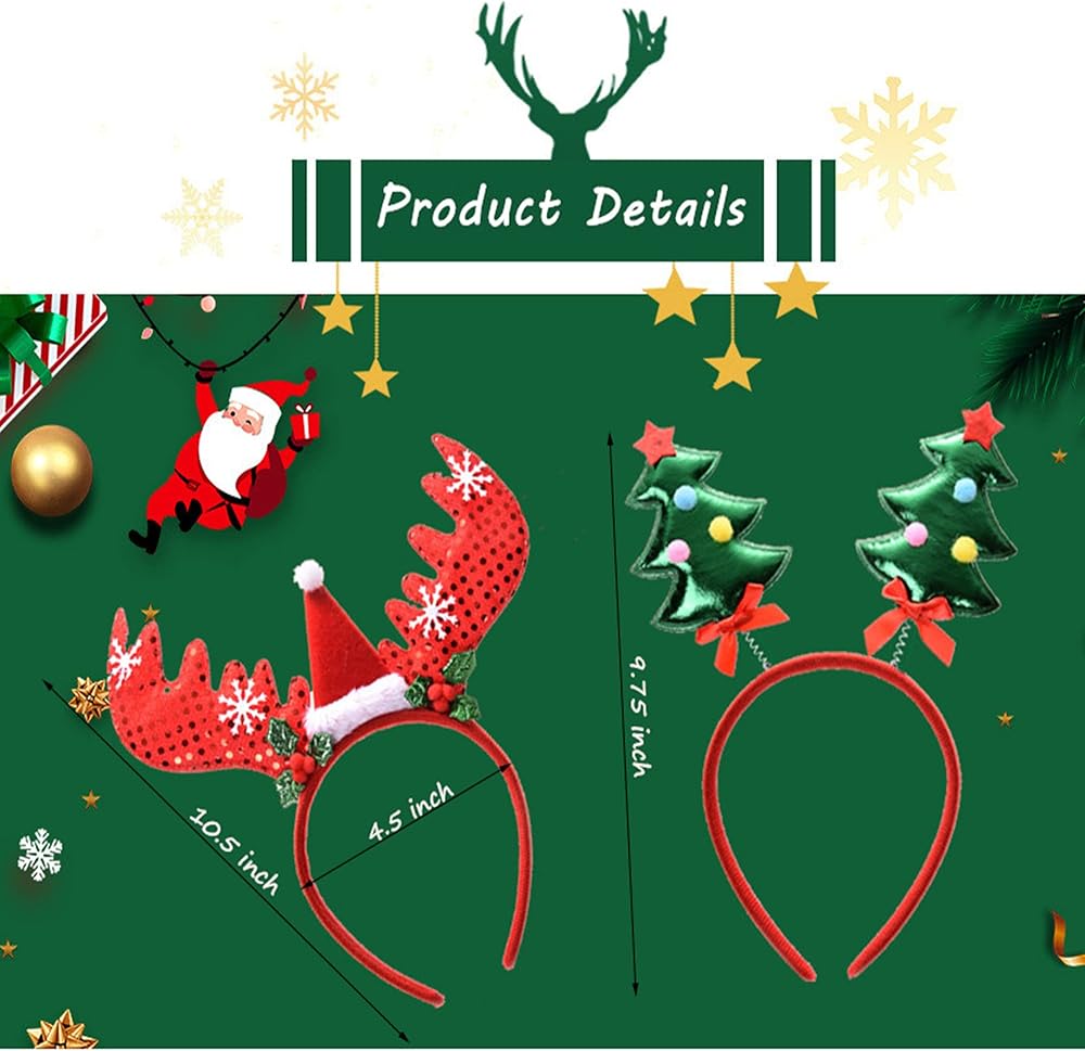 زينة عيد الميلاد المضحكة: عصابات الرأس هذه هي لوازم حفلات رائعة للكريسماس، يمكنك استخدام هذه العصابات في عيد الميلاد لتتناسب مع زي عيد الميلاد الخاص بك. يمكن أن تناسب أغطية الرأس للأطفال لعيد الميلاد المجيد ، الزفاف ، حفلة عيد الميلاد ، حفلة عيد الميلاد ، الكرنفالات ، الاحتفال ، الرقص ، كرة مقنعة. أغطية الرأس للعطلات يمكن استخدامها لالتقاط صورة العائلة أو صورة الشركة، وسوف عصابات رأس عيد الميلاد كن مرح لا يُنسى. اكسسوارات الكريسماس
