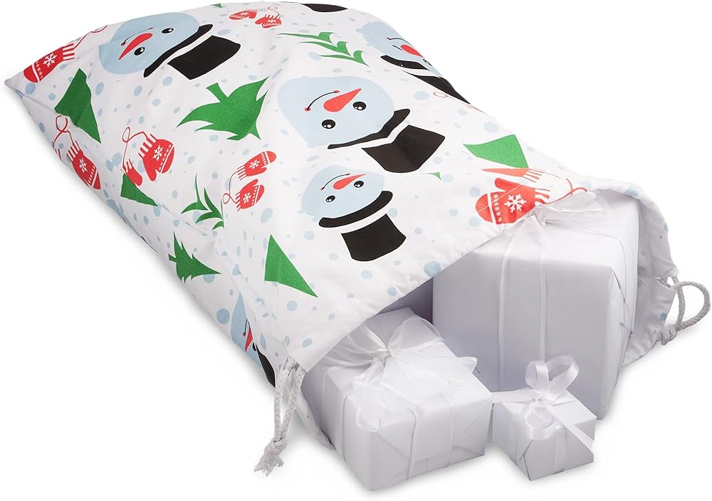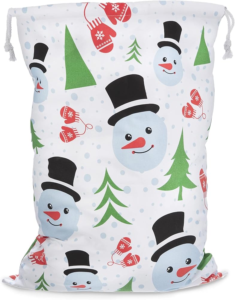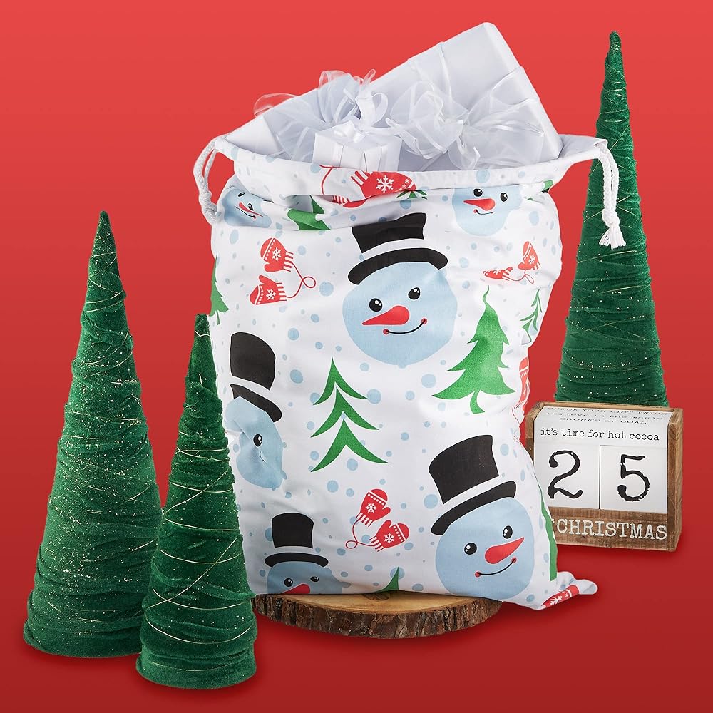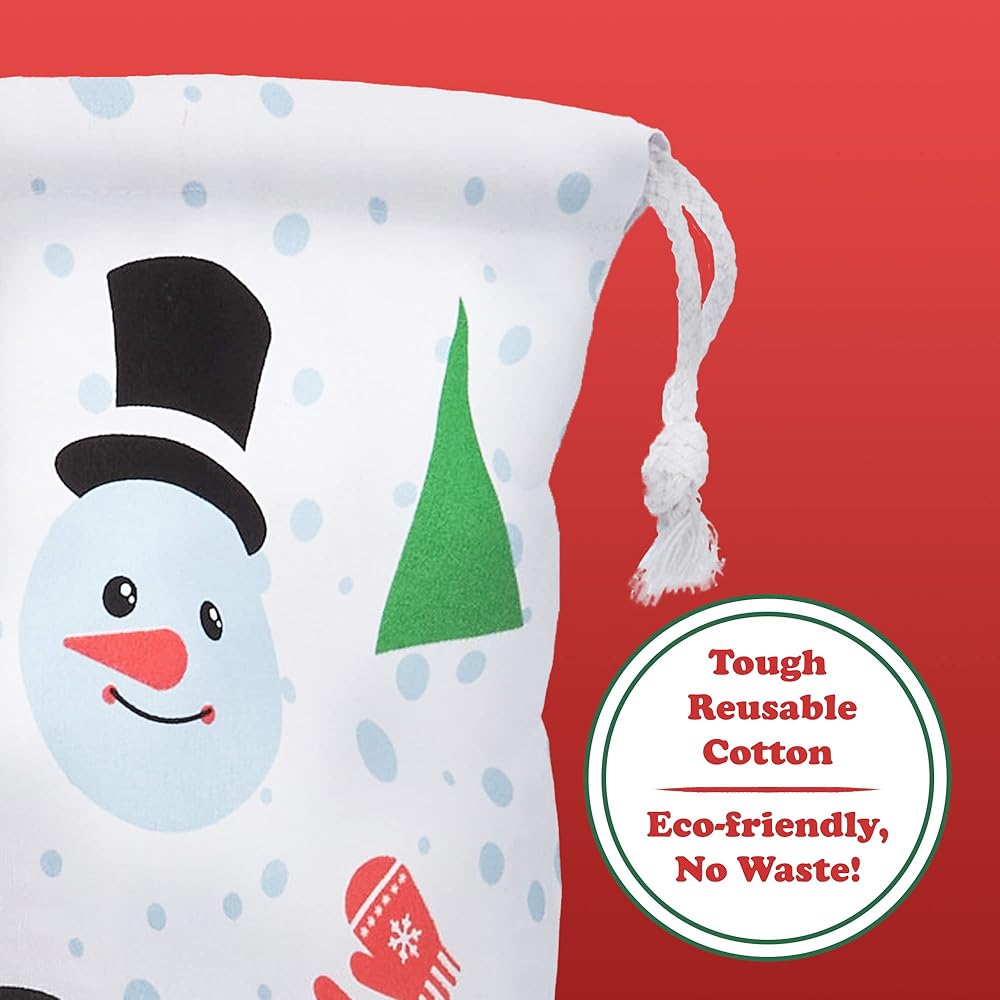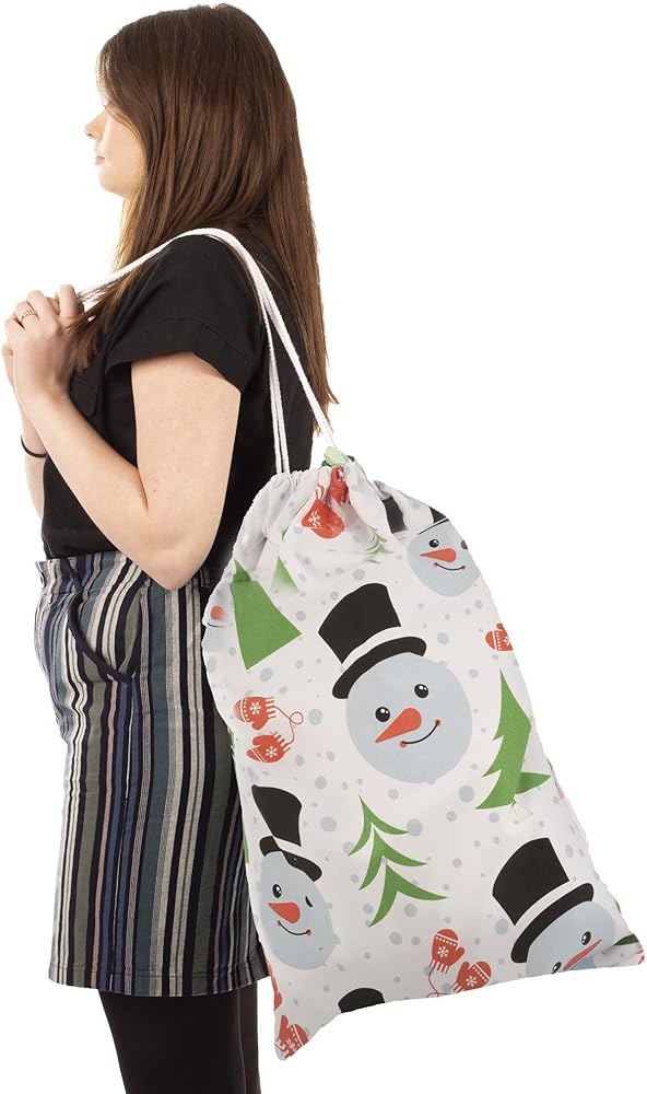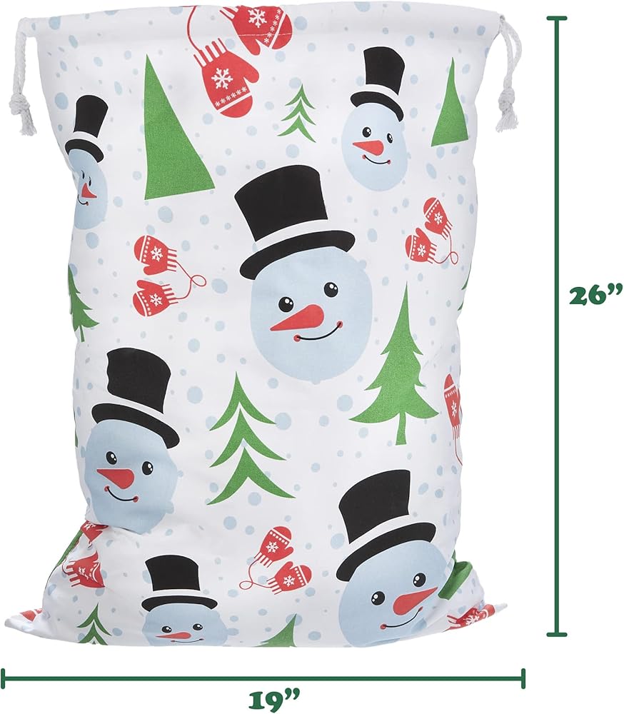 Festive Christmas Decor: Elevate your holiday decorations with our charming Snowman-themed Christmas Bags, adorned with mittens, snowflakes, and pine trees