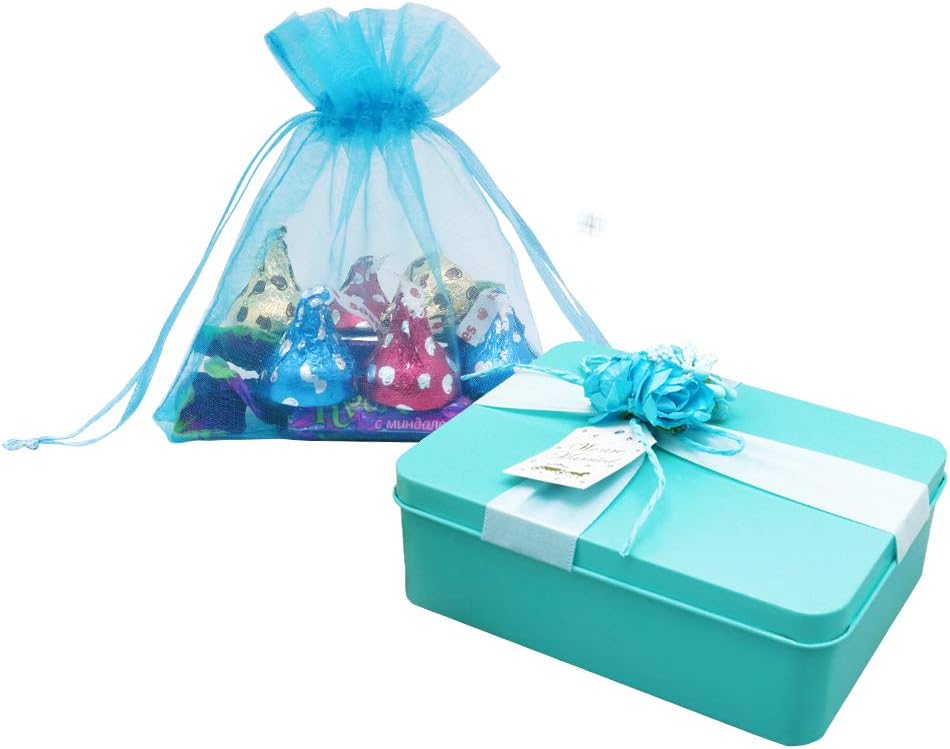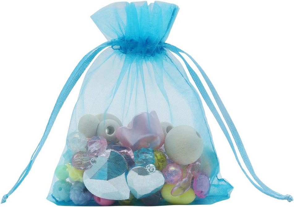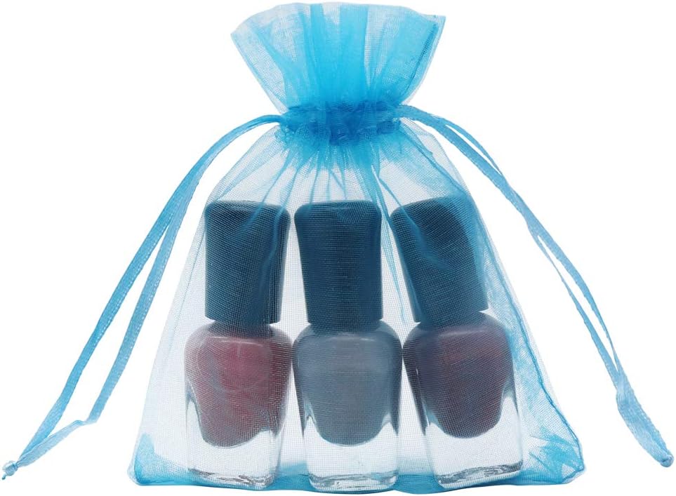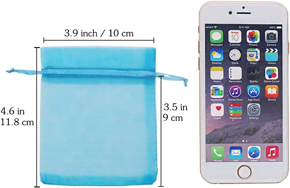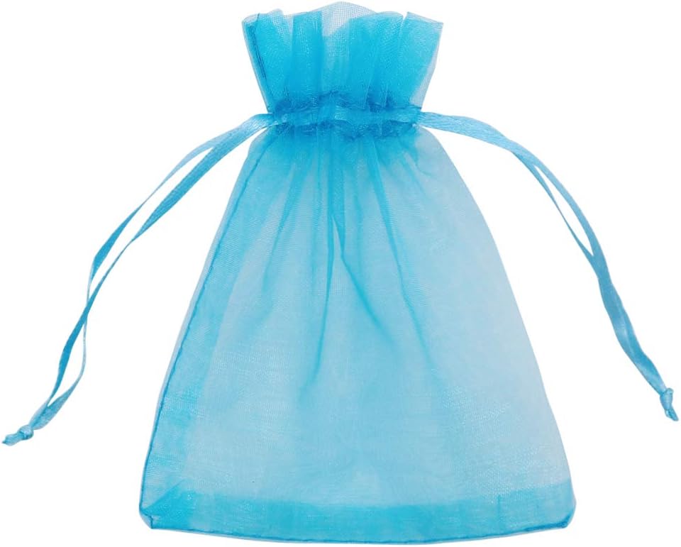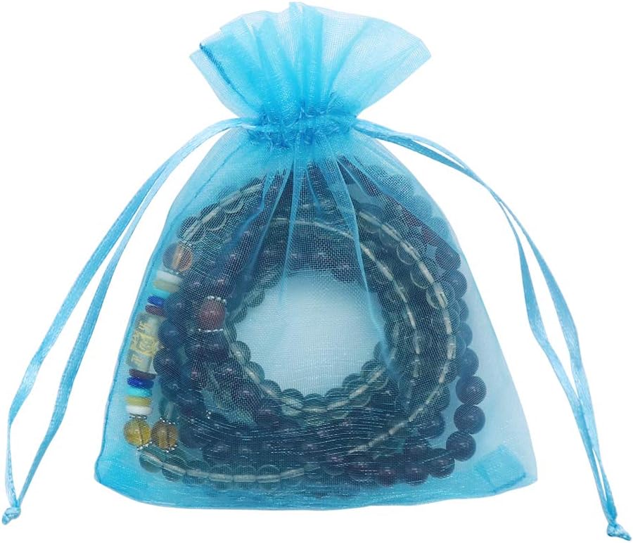 اتش ار اكس باكيج 100 قطعة من اكياس مجوهرات الاورجانزا برباط سحب باللون الازرق الفيروزي، 3.9 × 4.6 انش، اكياس صغيرة شبكية للحلوى، كيس صغير لهدايا الكريسماس الصغيرة