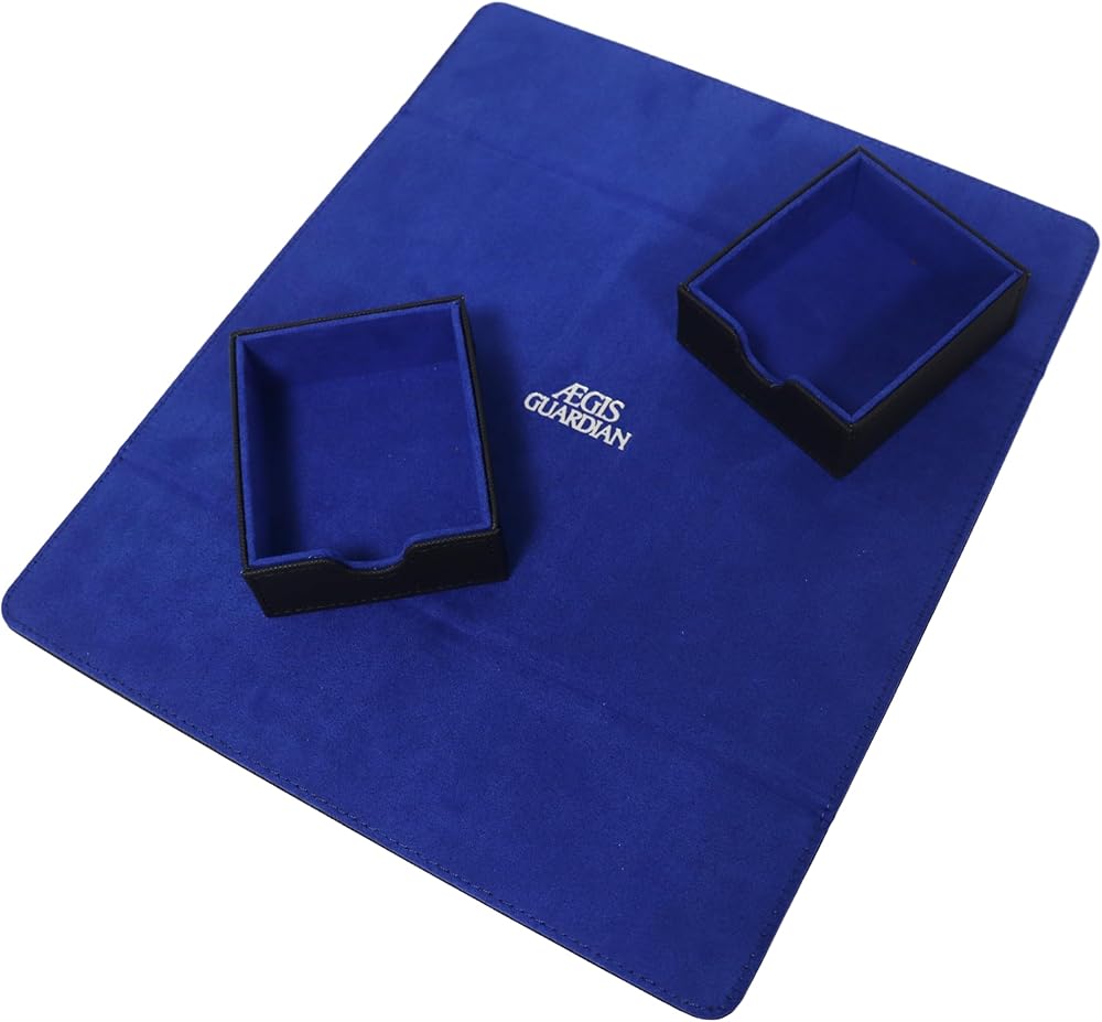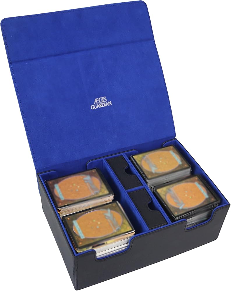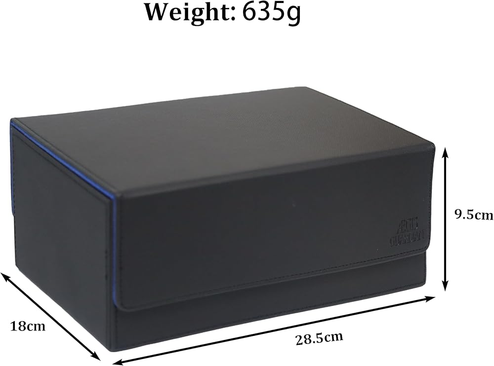 صندوق سطح السفينة AEGIS GUARDIAN Commander يحتوي على أكثر من 600 بطاقة بأكمام، صندوق سطح البطاقات مع درجتين من النرد مناسب لـ TCG MTG CCG، يحمل ما يصل إلى 4 صناديق تخزين للبطاقات، مغناطيس قوي من جلد البولي يوريثان، أسود وأزرق