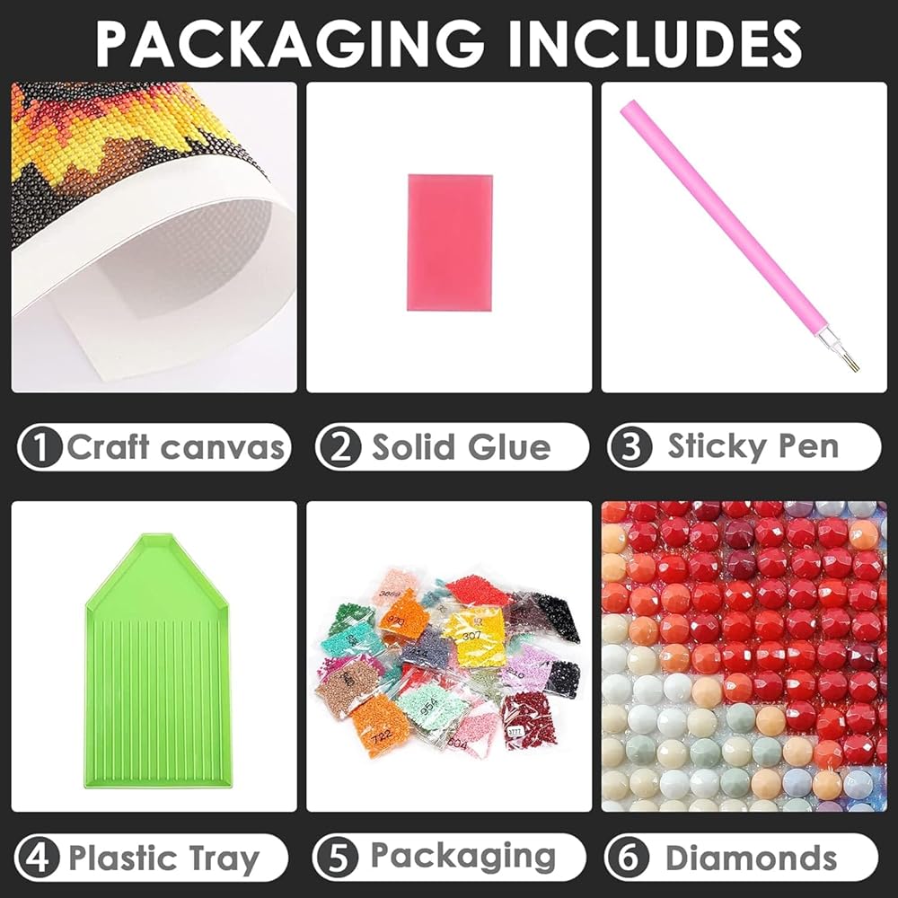 【تشمل المجموعات】 تأتي مجموعة الرسم الماسي مع كل ما تحتاجه للبدء! احصل على قماش لاصق كامل الحفر مع أسطورة مطبوعة، ومثقاب ماسي دائري 5D في عبوة تحمل علامة، وقلم توزيع ماسي واحد، وشمع واحد لالتقاط الماس باستخدام قلم توزيع المكياج، وصينية واحدة لحمل الماس.