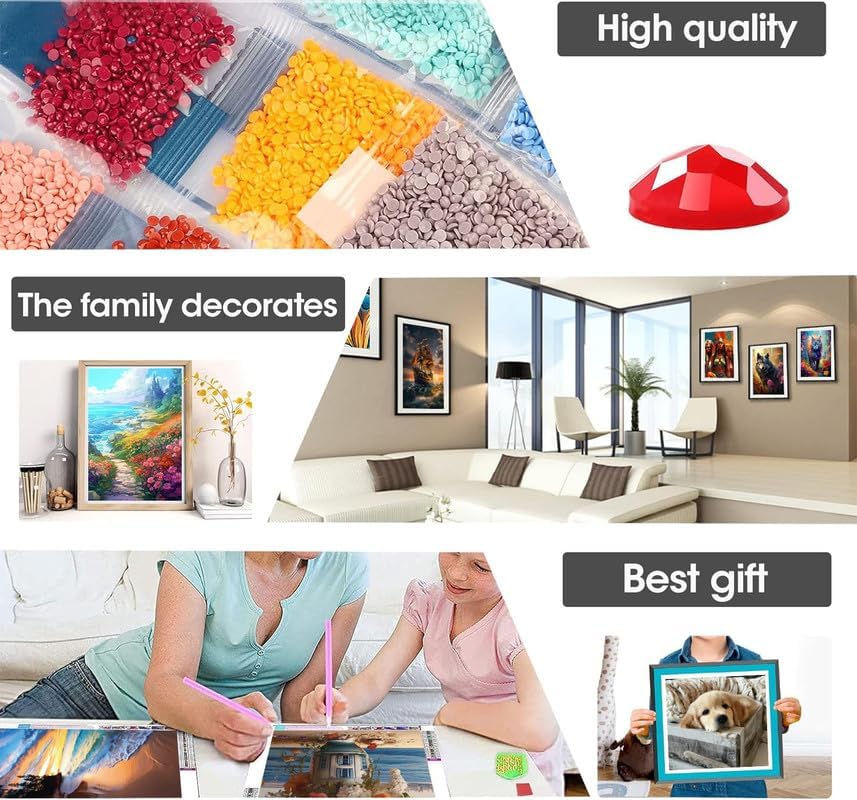 【أضف المزيد من المرح إلى الحياة】يمكن للرسم الماسي DIY أن يخفف التوتر ويضبط المشاعر ويزيد الثقة بالنفس والمثابرة لتطوير الصبر. مناسبة لكبار السن/الأطفال/الكبار. مجموعة الرسم الماسي هي الديكور الأكثر شعبية، ويمكن استخدامها أيضًا كهدية، مثل أعياد الميلاد والكريسماس وعيد الشكر والحفلات وحفلات الزفاف وما إلى ذلك.