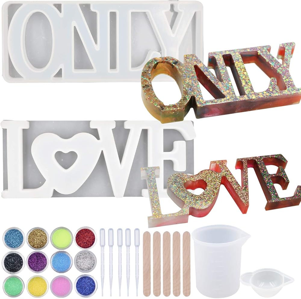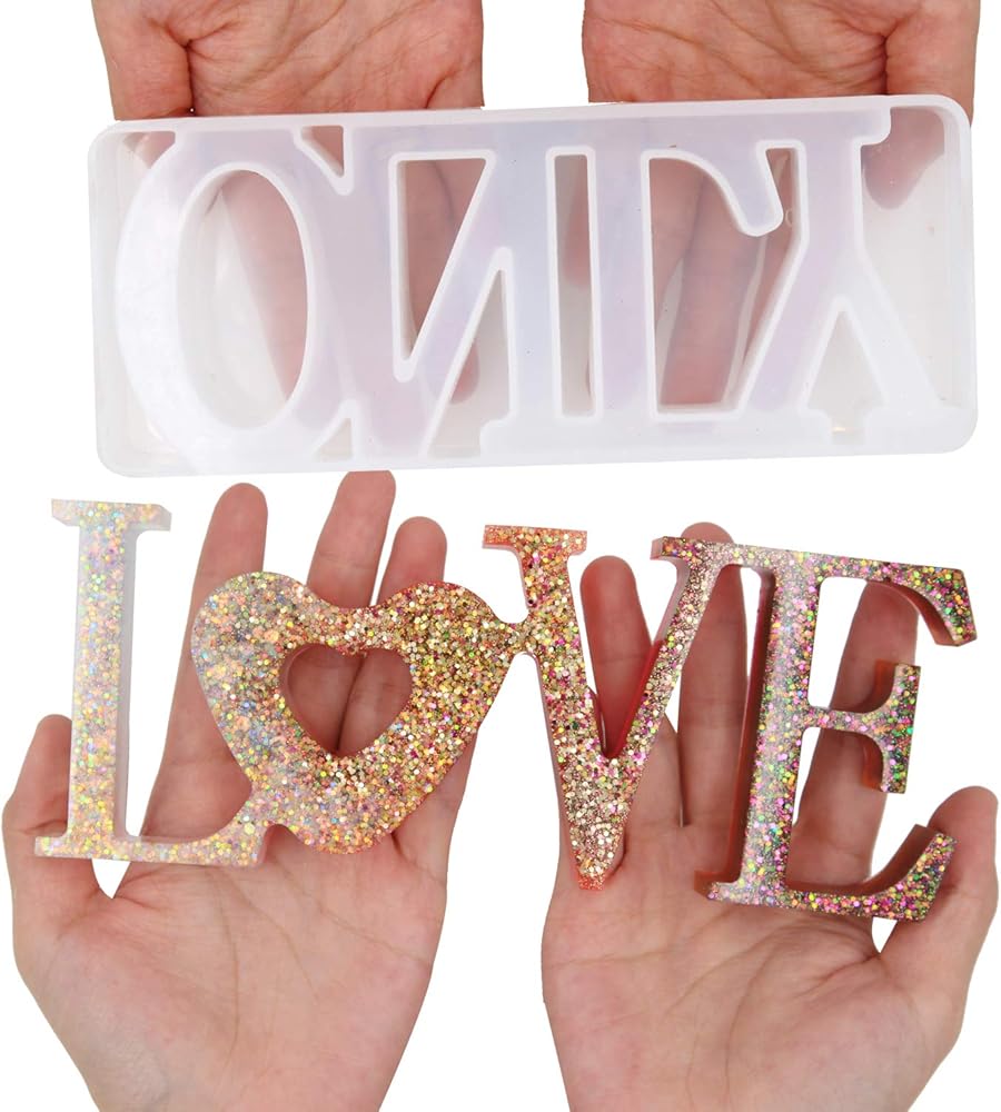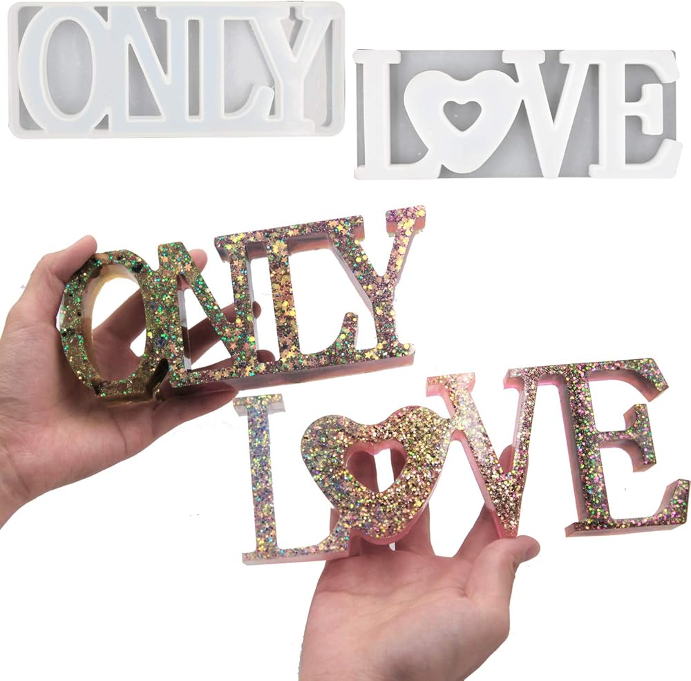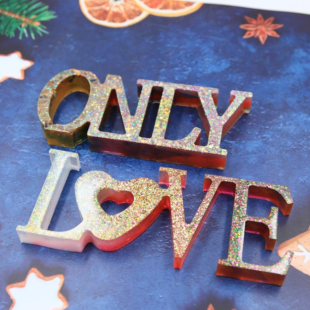يوتينغهاو 26 قطعة 3D قوالب الراتنج حرف كبير سيليكون قوالب فقط الحب الكلمة تسجيل حرف الصب قوالب الراتنج مجموعة مع بريق مسحوق أكواب القطارات صناعة المنزل مكتب هالوين الديكور