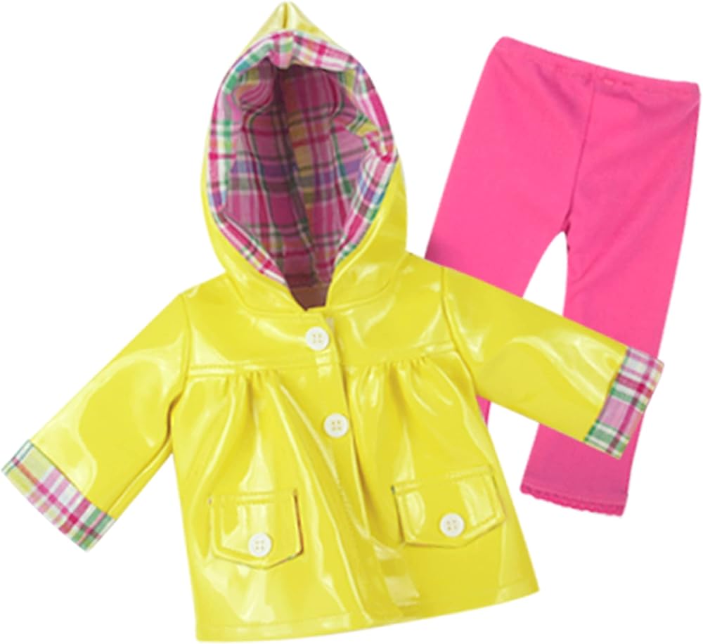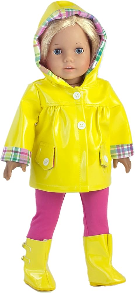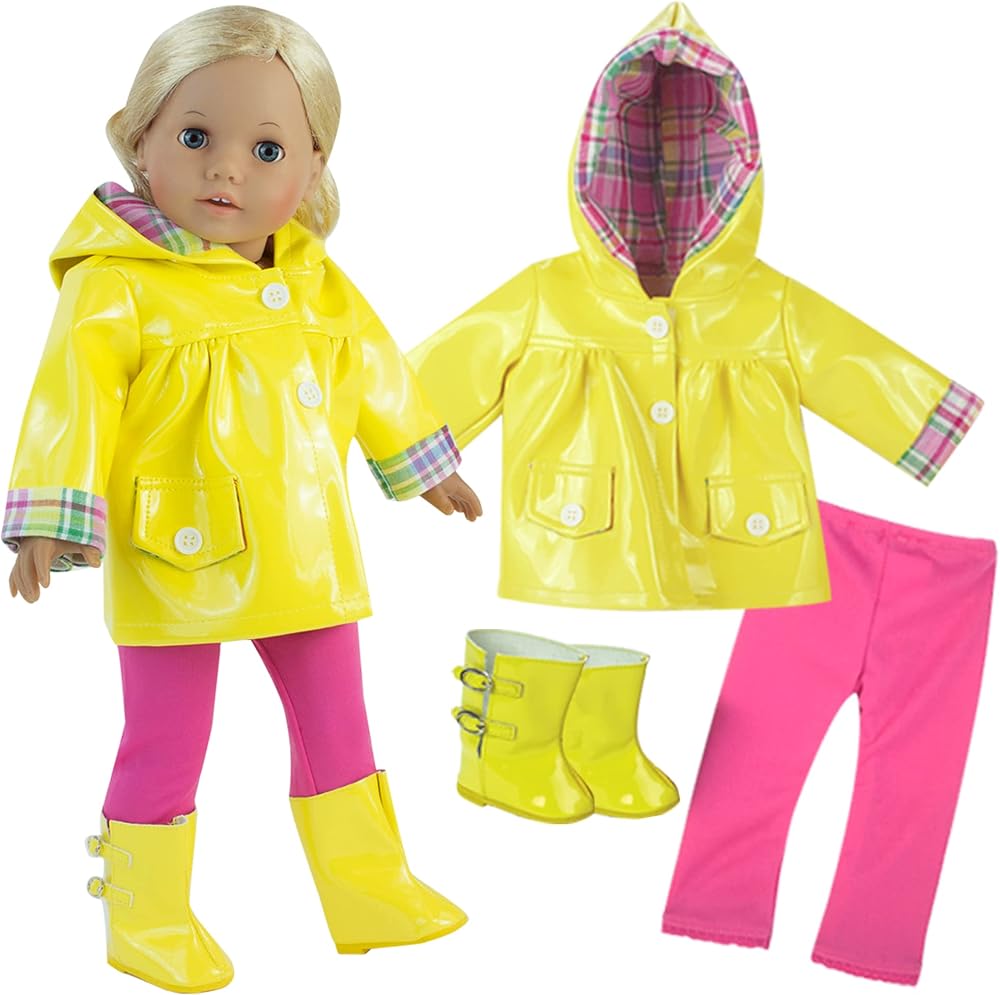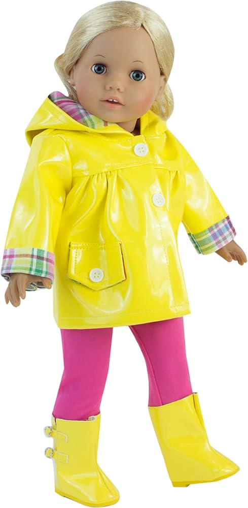 مجموعة معدات المطر للدمى مقاس 18 انش مكونة من 4 قطع مصنوعة من أقمشة/مواد عالية الجودة، ملابس دمى مصممة وبأسعار معقولة!