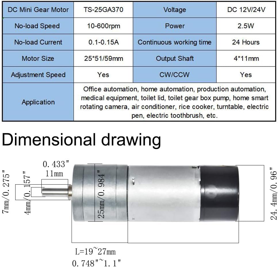 Out Shaft Dimensions: 11 x 4mm / 0.433 x 0.1575in (L*D) with 10 x 0.5mm / 0.39 * 0.017inches flat cut off